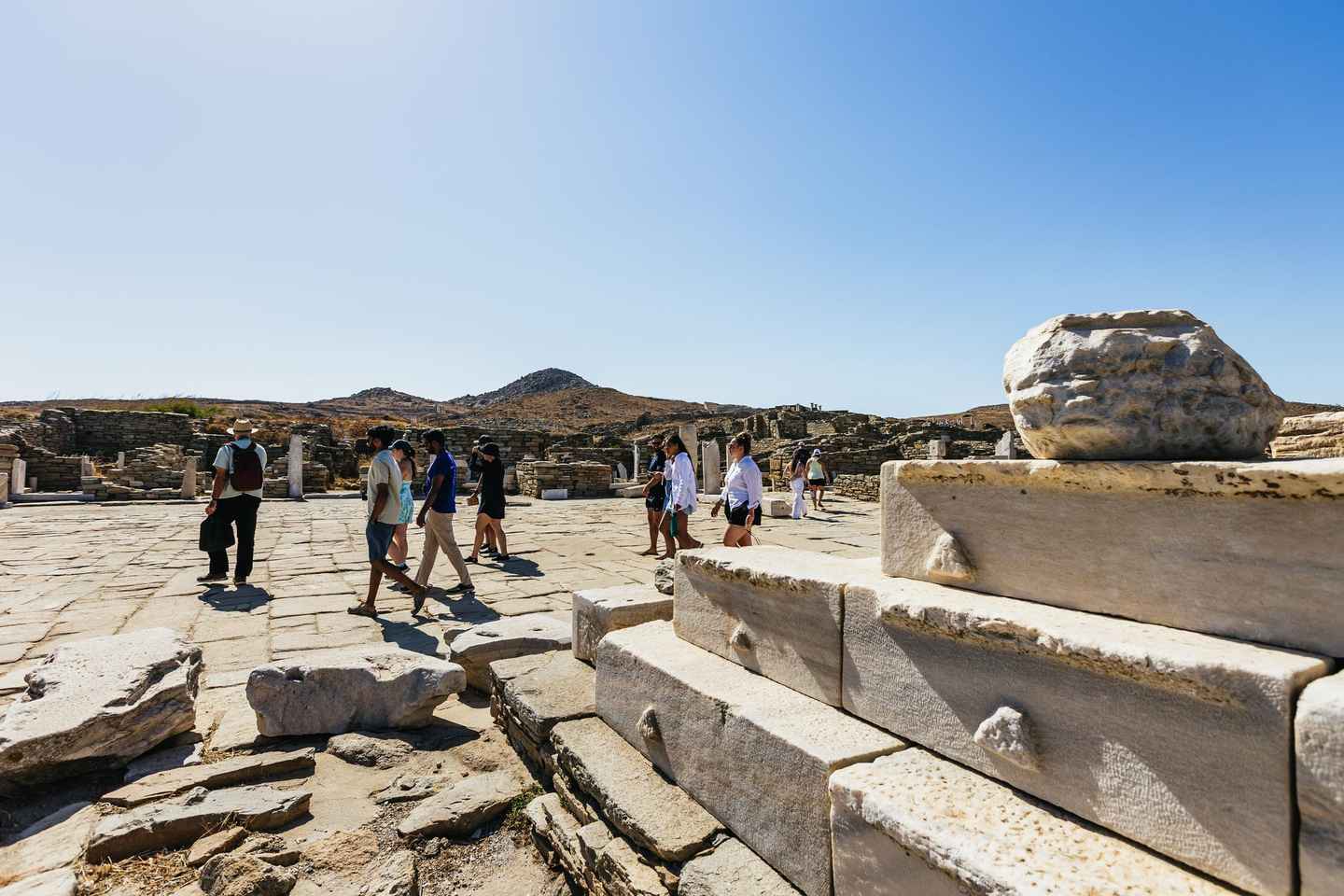 次に、ユネスコ世界遺産に登録されているデロス島へ。古代遺跡やモザイクを巡るガイドツアーに参加し、キントス山に登ってキクラデス諸島の壮大な景色を堪能できます。ギリシャの豊かな歴史をより深く感じられる特別な体験です。