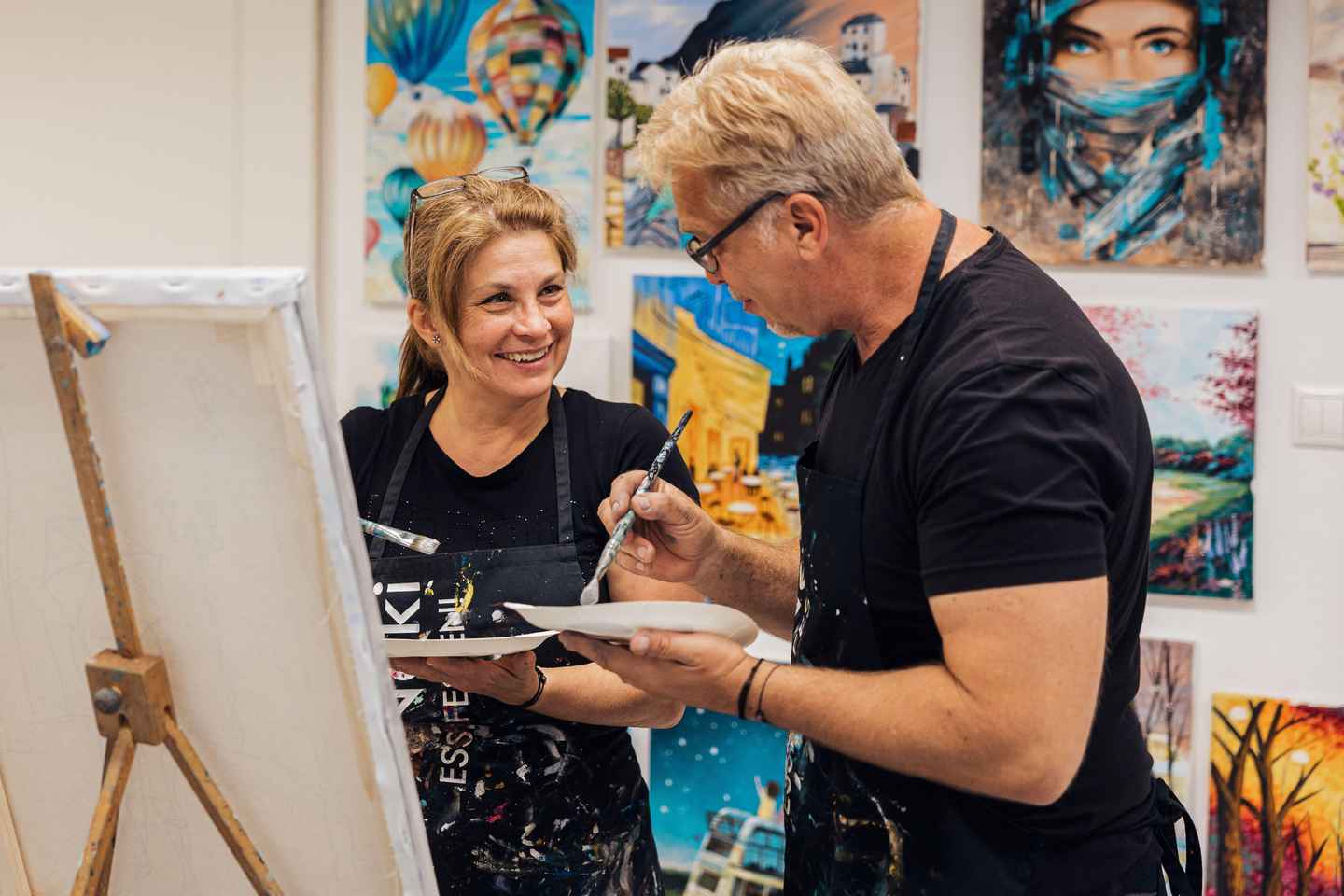 居心地の良いスタジオでは、200以上の絵画から選べるほか、才能ある地元のアーティストからのアドバイスも受けられます。お一人でもグループでも、ご希望に応じた参加方法が用意されています。少人数のグループは予定されたセッションに参加でき、大人数のグループは専用の英語コースを予約することが可能です。