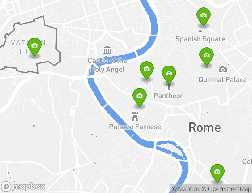 このアクティビティの出発地点はローマです。探索の途中で、地元の人気アトラクションのいくつかを見ることができます。この旅程のハイライトにはSt. Peter's Square (Piazza San Pietro), Piazza Navona, Campo de' Fiori, Pantheon, and Spanish Steps (Piazza di Spagna)などがあります。近くのローマには、地元でベストの観光デスティネーションがいくつかあります。Trevi Fountain (Fontana di Trevi) and Circus Maximus (Circo Massimo)などは、見逃せない人気スポットです。