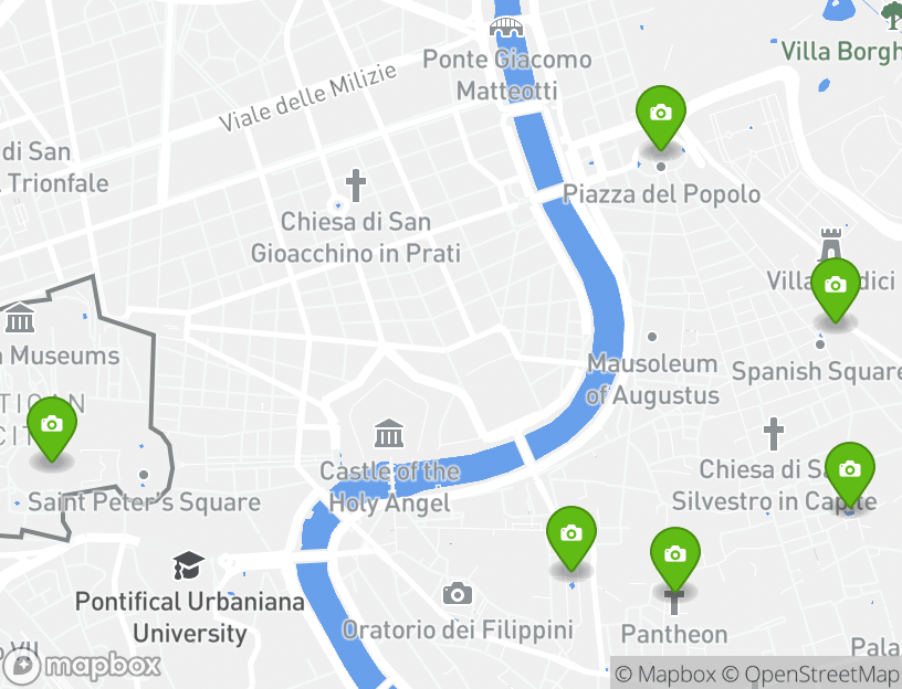 このアクティビティの出発地点はRoma Terminiです。探索の途中で、地元の人気アトラクションのいくつかを見ることができます。この旅程のハイライトにはTrastevere, Piazza del Popolo, Spanish Steps (Piazza di Spagna), Pantheon, and St. Peter's Square (Piazza San Pietro)などがあります。近くのローマには、地元でベストの観光デスティネーションがいくつかあります。Trevi Fountain (Fontana di Trevi) and Piazza Navonaなどは、見逃せない人気スポットです。