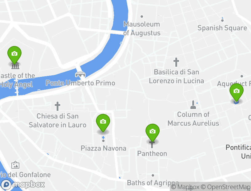 このアクティビティの出発地点はL. Go Gaetana Agnesi, 3です。探索の途中で、地元の人気アトラクションのいくつかを見ることができます。この旅程のハイライトにはTrevi Fountain (Fontana di Trevi), Temple of Hadrian (Tempio di Adriano), Pantheon, Piazza Navona, and Fountain of the Four Rivers (Fontana delle Quattro Fiumi)などがあります。近くのローマには、地元でベストの観光デスティネーションがいくつかあります。Sant'Angelo Bridge (Ponte Sant'Angelo)などは、見逃せない人気スポットです。