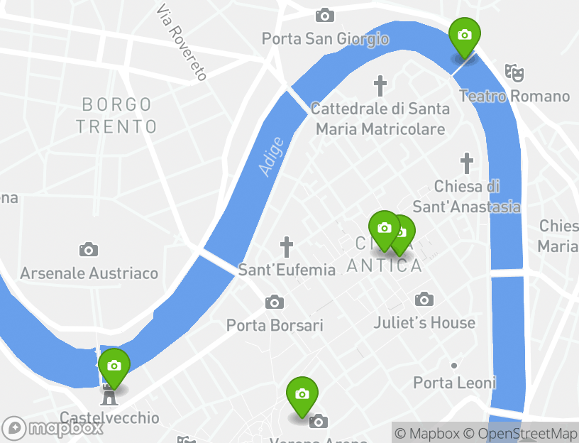 このアクティビティの出発地点はヴェローナです。探索の途中で、地元の人気アトラクションのいくつかを見ることができます。近くのヴェローナには、地元でベストの観光デスティネーションがいくつかあります。