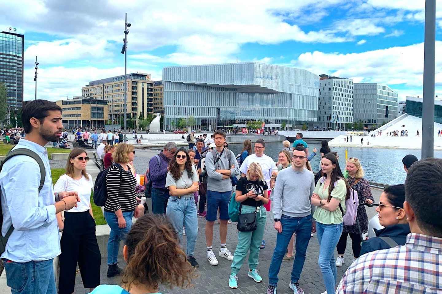 オスロ・オペラハウスの美しい建築を眺め、クリスチャニア広場など歴史的な場所を巡ります。アーケル・ブリッゲの活気を感じ、市庁舎の壮大さに感動し、国立劇場の文化的な重要性を体験。カール・ヨハン通りを歩きながら、歴史と現代が交差する様子を楽しめます。