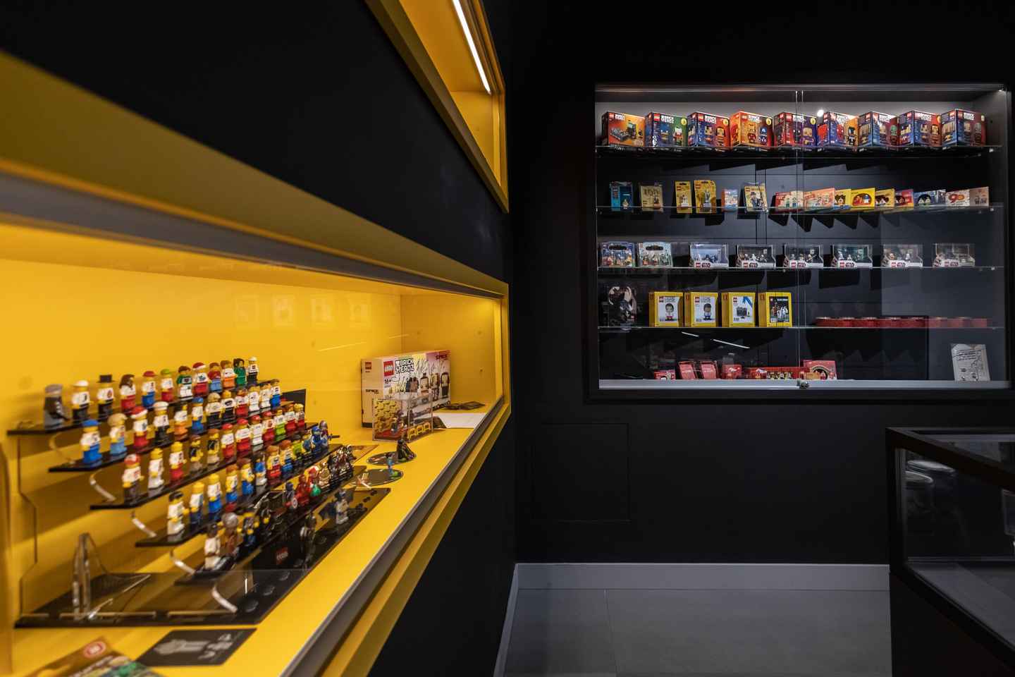 館内には700点以上の多彩なブロックセットが並び、希少な宇宙旅行フィギュアやコレクター向けの限定アイテムも展示されています。世界に3体しか存在しない本物のゴールドプロトタイプフィギュアも必見です。