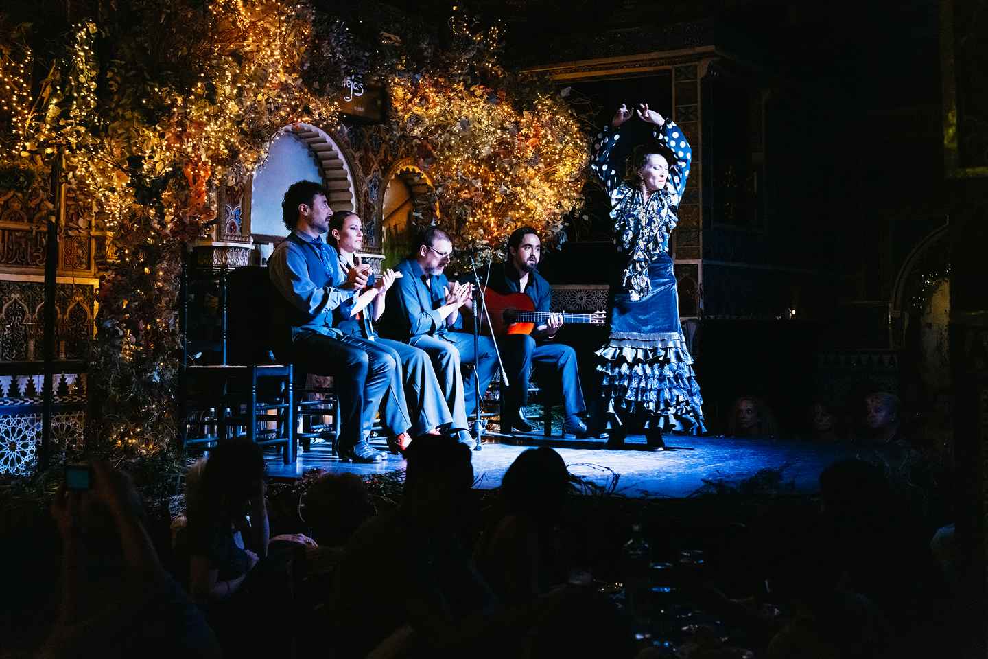 才能あふれるフラメンコアンサンブルによる1時間の圧巻のパフォーマンスをお楽しみください。アラブ風の装飾や木彫りが施された独特の内装が、まるで別世界にいるかのような雰囲気を演出します。