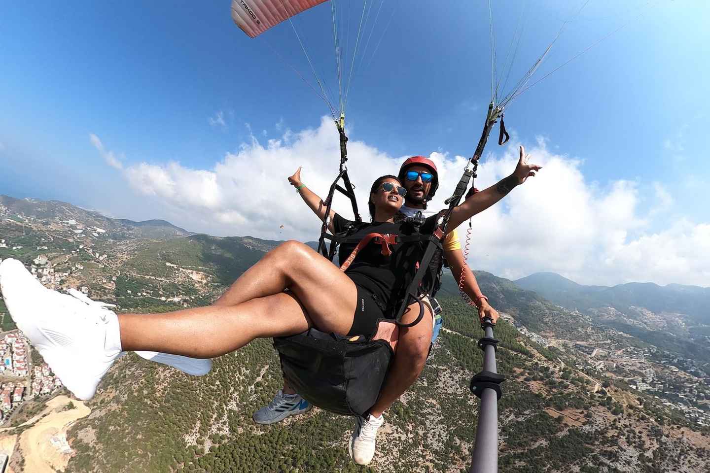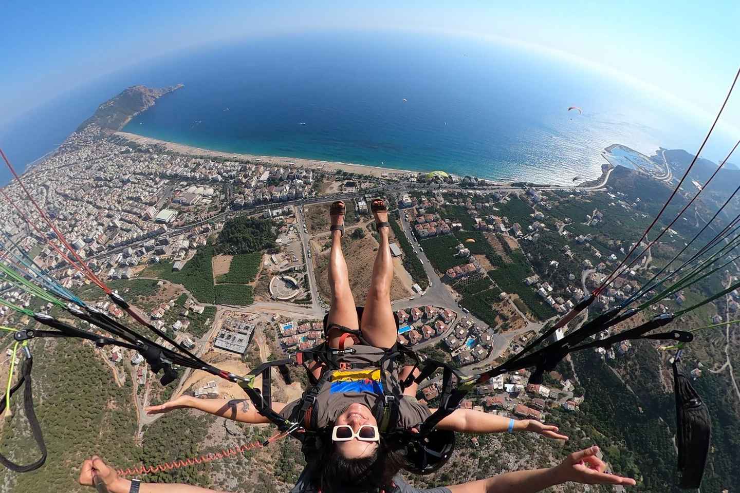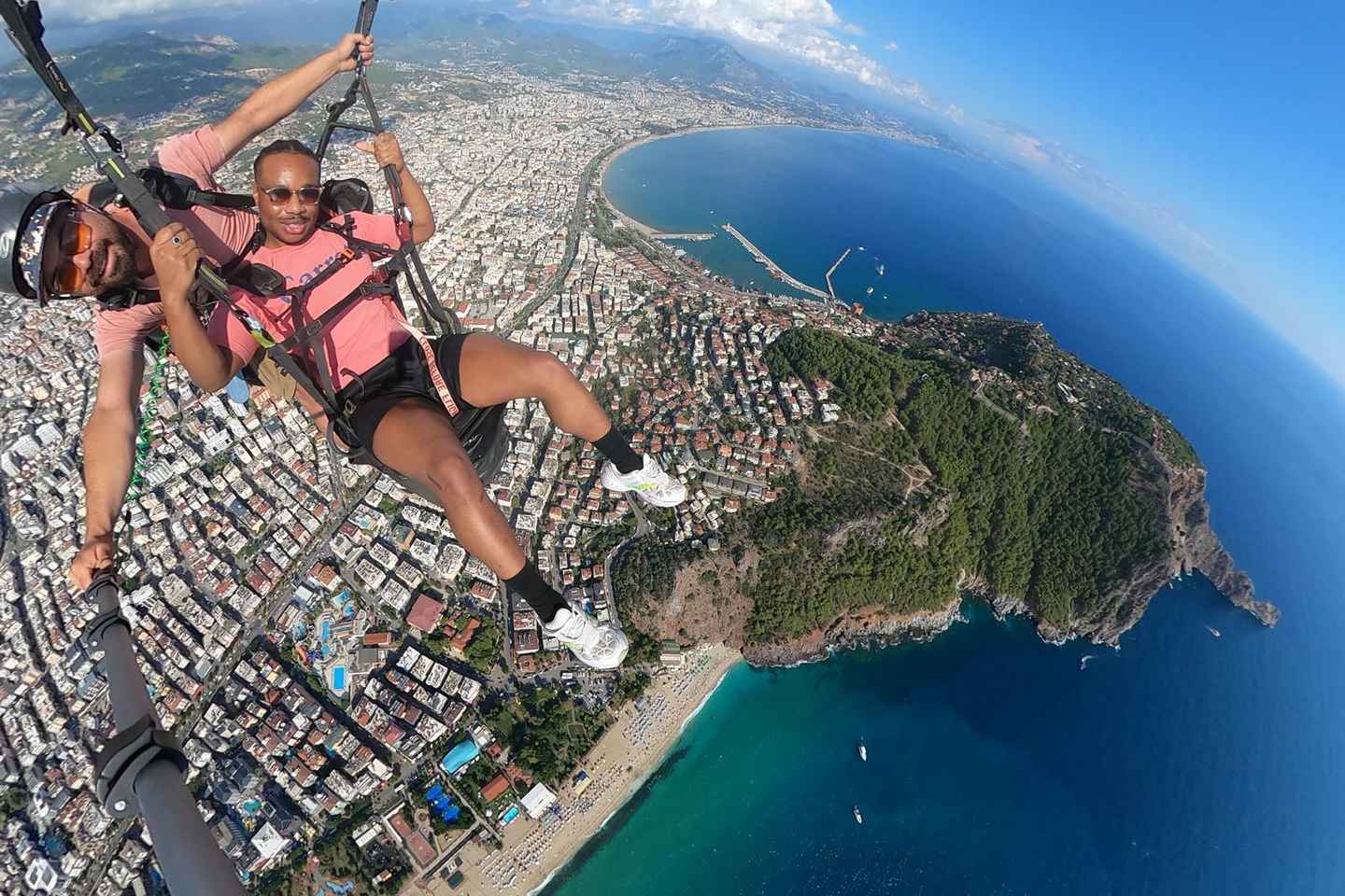まずは、空の旅に備えて安全ブリーフィングを受け、準備を整えます。400メートルまたは700メートルの離陸地点まで登る際には、次第に高まる興奮を感じることでしょう。アランヤの象徴的なクレオパトラビーチを含む絶景のパノラマを滑空しながら、空中を優雅に飛行します。