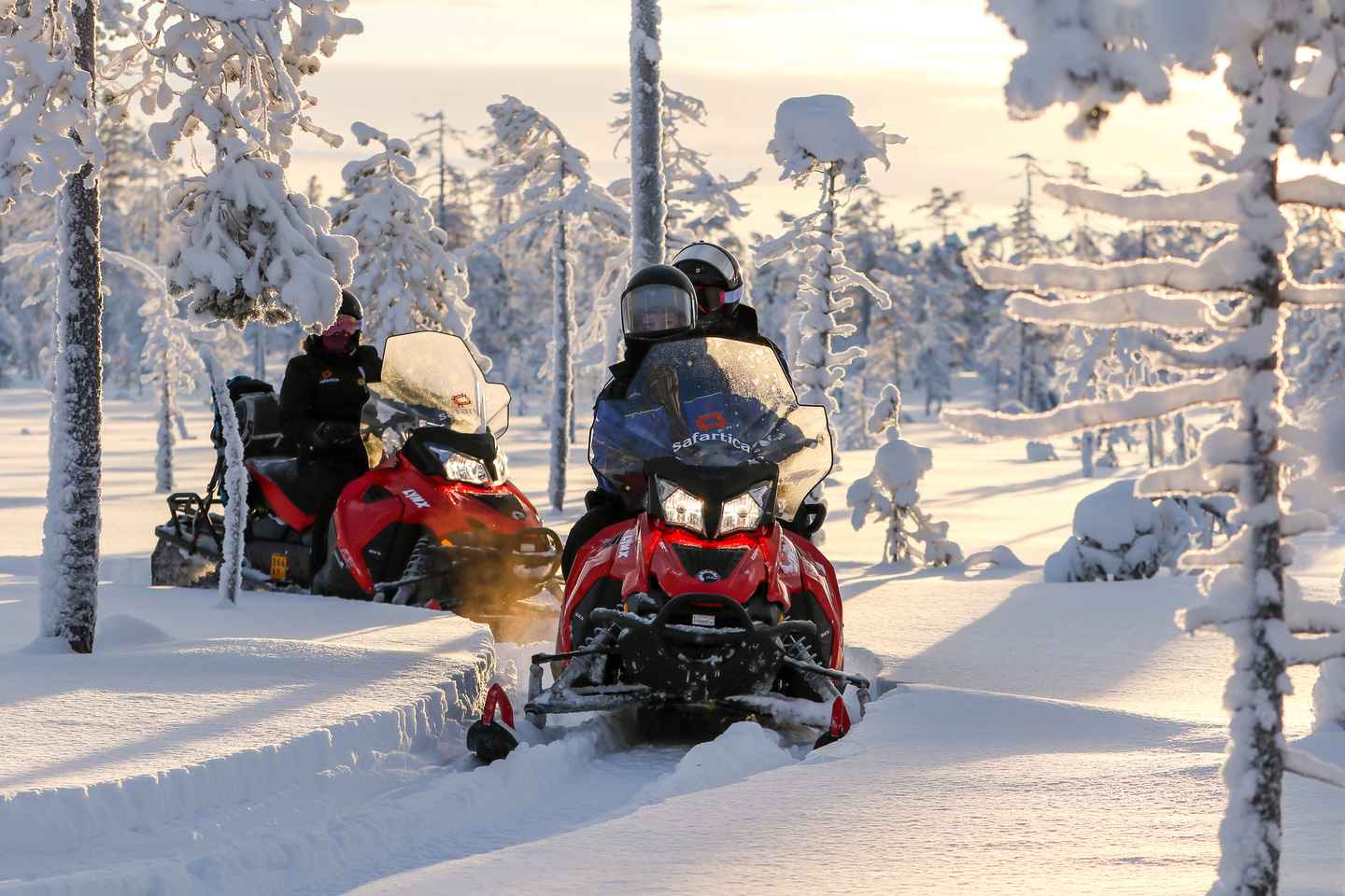 로바니에미의 모험을 흥미진진한 스노모빌 타기로 시작해보세요! 이 독특한 투어는 아드레날린을 자극하는 스노모빌과 북극 야생 동물의 매혹적인 존재를 결합합니다. 짧은 순록 썰매 타기를 즐기며 이 멋진 동물들의 뛰어난 능력을 감상하세요.