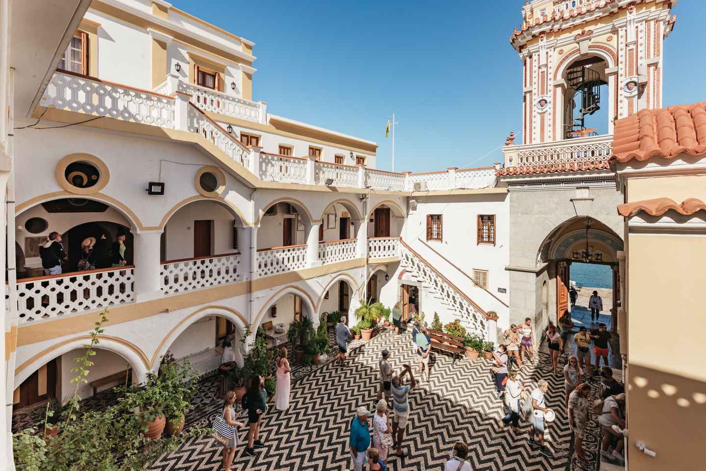 여행의 첫 번째 목적지는 대천사 미카엘 파노르미티스 수도원입니다. 이 신성한 장소에서 1시간 동안 촛불을 켜거나 평화로운 환경을 만끽해보세요.