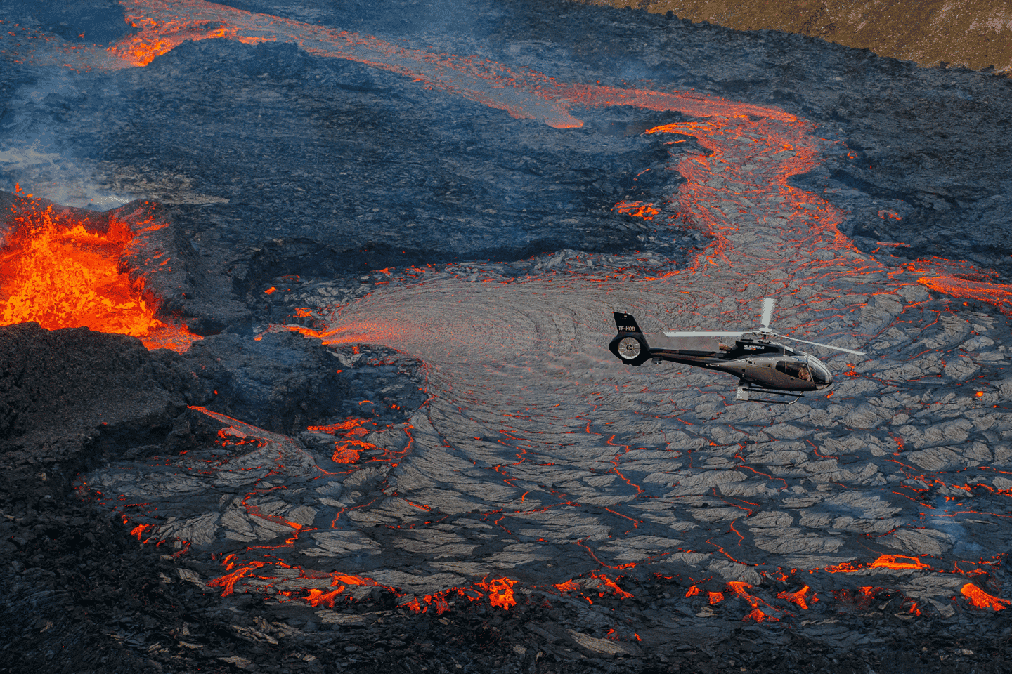 아이슬란드의 장관을 이루는 화산 지형 위를 비행하며 스릴 넘치는 "분화 투어"를 경험해 보세요! 헬리콥터를 타고 레이캬네스 반도의 최근 분화 지역을 편안하게 감상할 수 있습니다.