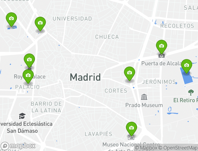 이 액티비티의 시작점은 C. De Felipe IV, 1입니다. 어드벤처를 즐기는 동안, 최고의 지역 명소를 둘러볼 수 있습니다. 근처에 있는 마드리드은(는) 최고의 로컬 관광 여행지를 제공합니다. Almudena Cathedral (Catedral de la Almudena), Retiro Park (Parque de El Retiro), Prado Museum (Museo del Prado), and Reina Sofia Museum (Museo Nacional Centro de Arte Reina Sofia)은(는) 놓칠 수 없는 인기 장소 중 하나입니다.