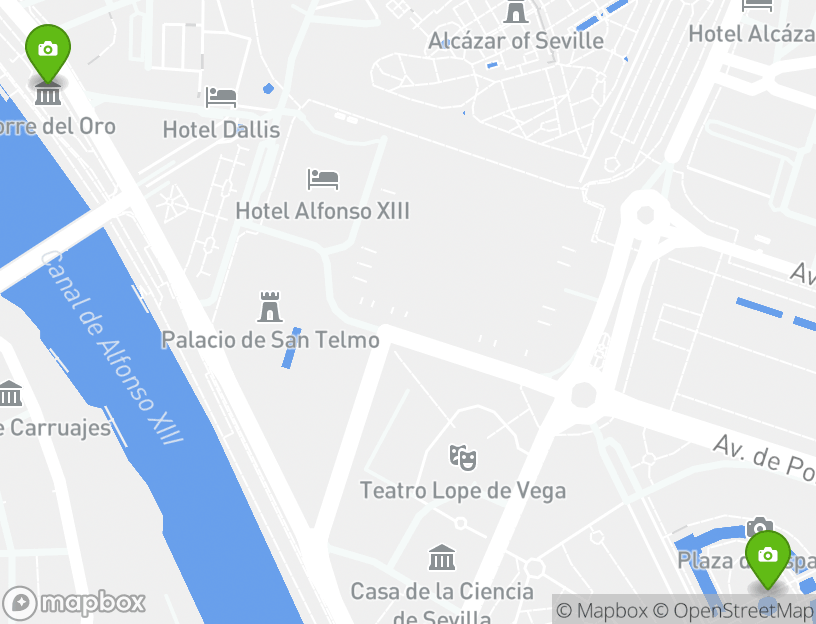 이 액티비티의 시작점은 C. Federico Sánchez Bedoya, 12입니다. 어드벤처를 즐기는 동안, 최고의 지역 명소를 둘러볼 수 있습니다. Triana, Torre del Oro, Maria Luisa Park, and Plaza de España은(는) 이 여정의 백미입니다. 근처에 있는 세비야은(는) 최고의 로컬 관광 여행지를 제공합니다.