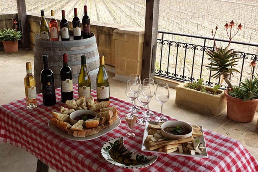 As you wander through the vineyard, take in the breathtaking landscapes that define the region's unique terroir. On the panoramic terraces, indulge in a tasting of two exquisite whites, a refreshing rosé, and a bold red, each paired with a delightful Maltese platter.