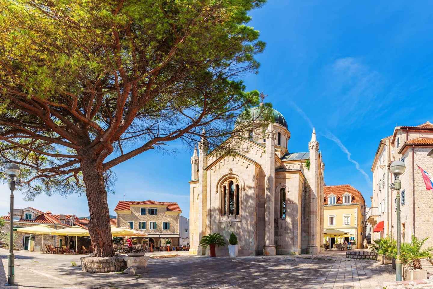 In Tivat, you’ll board a scenic boat cruise at 10 a.m., gliding across the sparkling bay toward Herceg Novi. Enjoy an hour of free time to discover this historic coastal town before continuing to the open sea and the inviting beach at Žanjice. Here, you’ll have 90 minutes to swim, relax, or opt for a small-boat ride to the famed Blue Cave for an unforgettable experience.