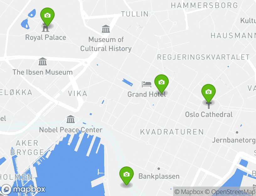 The starting point for this walking tour is located in Oslo. The exact address is Jernbanetorget, 0154 Oslo, Norway. The endpoint of the tour is located at Slottsplassen 1, 0010 Oslo, Norway.
