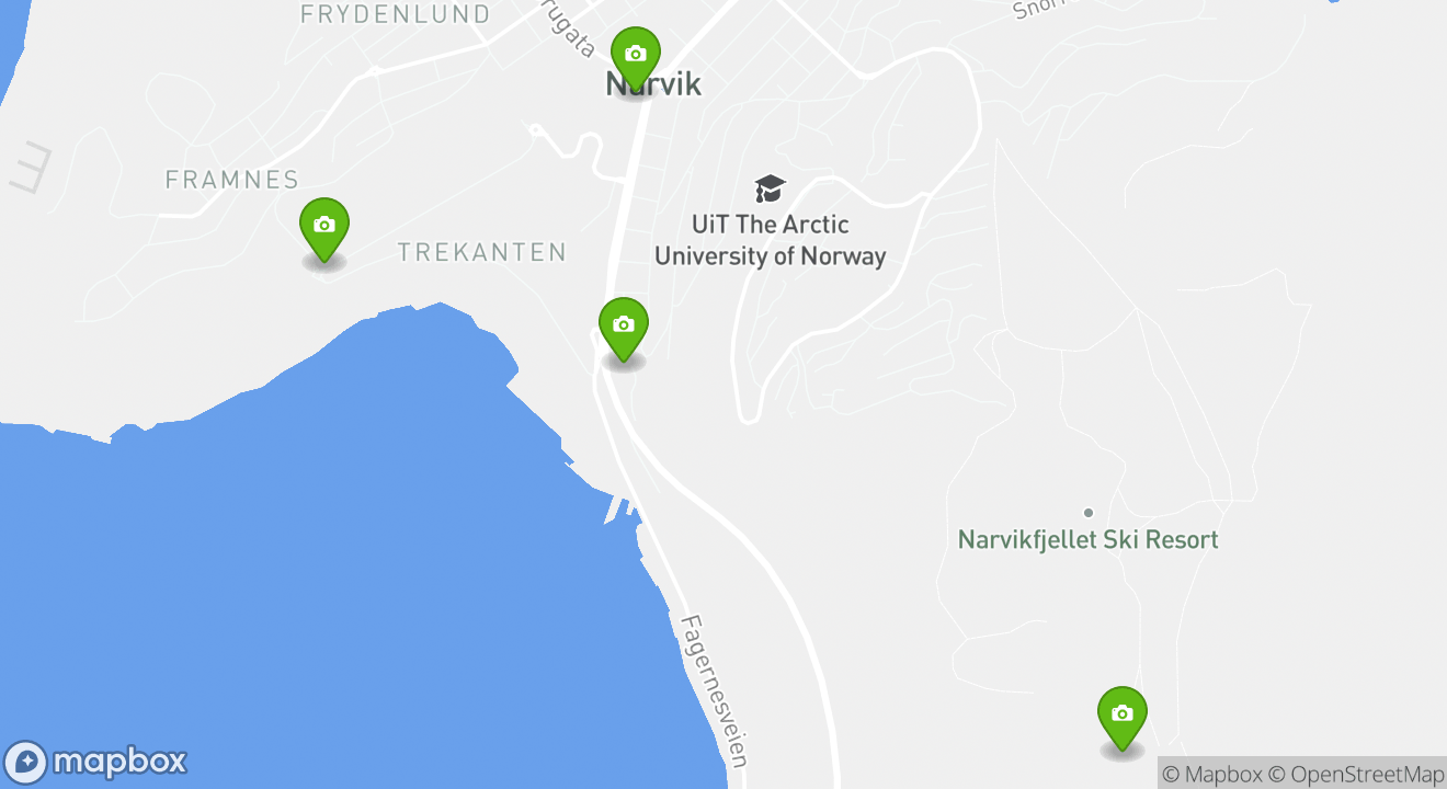 Take a closer look at the town map below for the exact locations of all the top attractions in Narvik.
