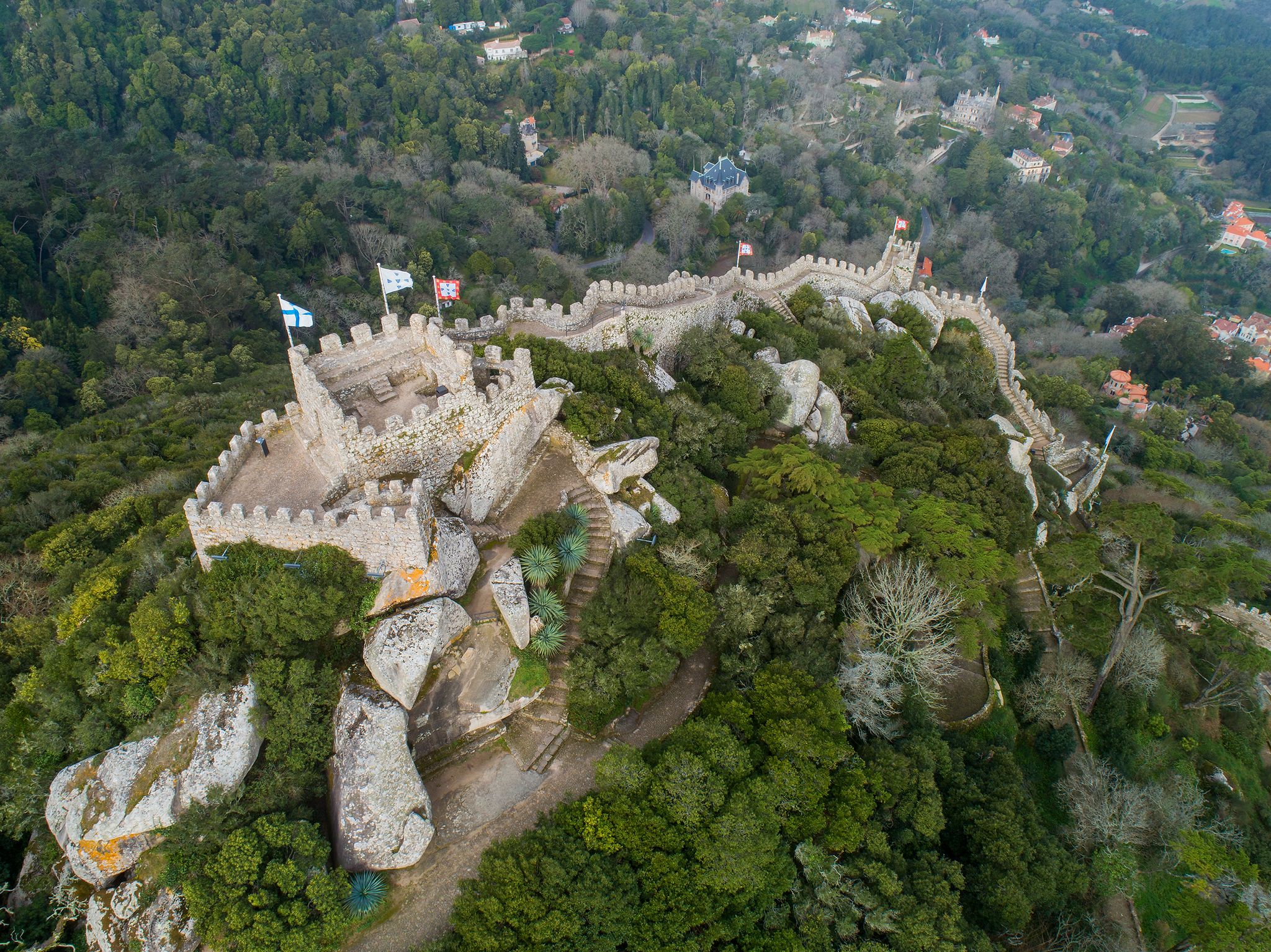 Castle of the Moors is conveniently accessible by various transportation options in Sintra, Portugal. If you're flying in, Lisbon Portela Airport is approximately 13.8 miles (22.2 km) away from the town center. From there, you can easily reach Castle of the Moors by taxi or shuttle.