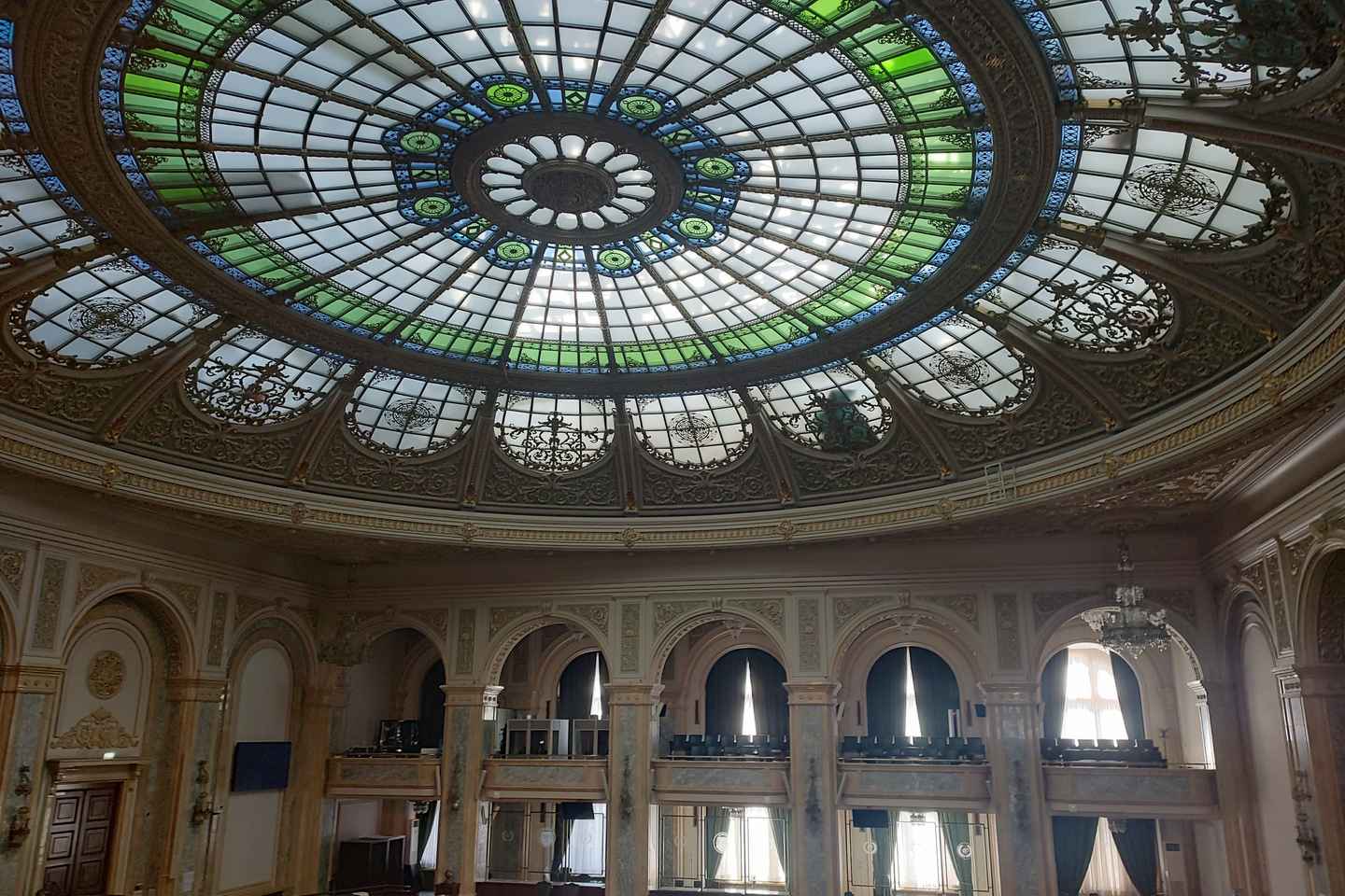 As you explore this monumental example of Communist-era architecture, you'll ascend grand staircases and wander through opulent hallways. The tour takes you through impressive meeting and conference rooms spread across different floors, each revealing the building's remarkable scale and design.