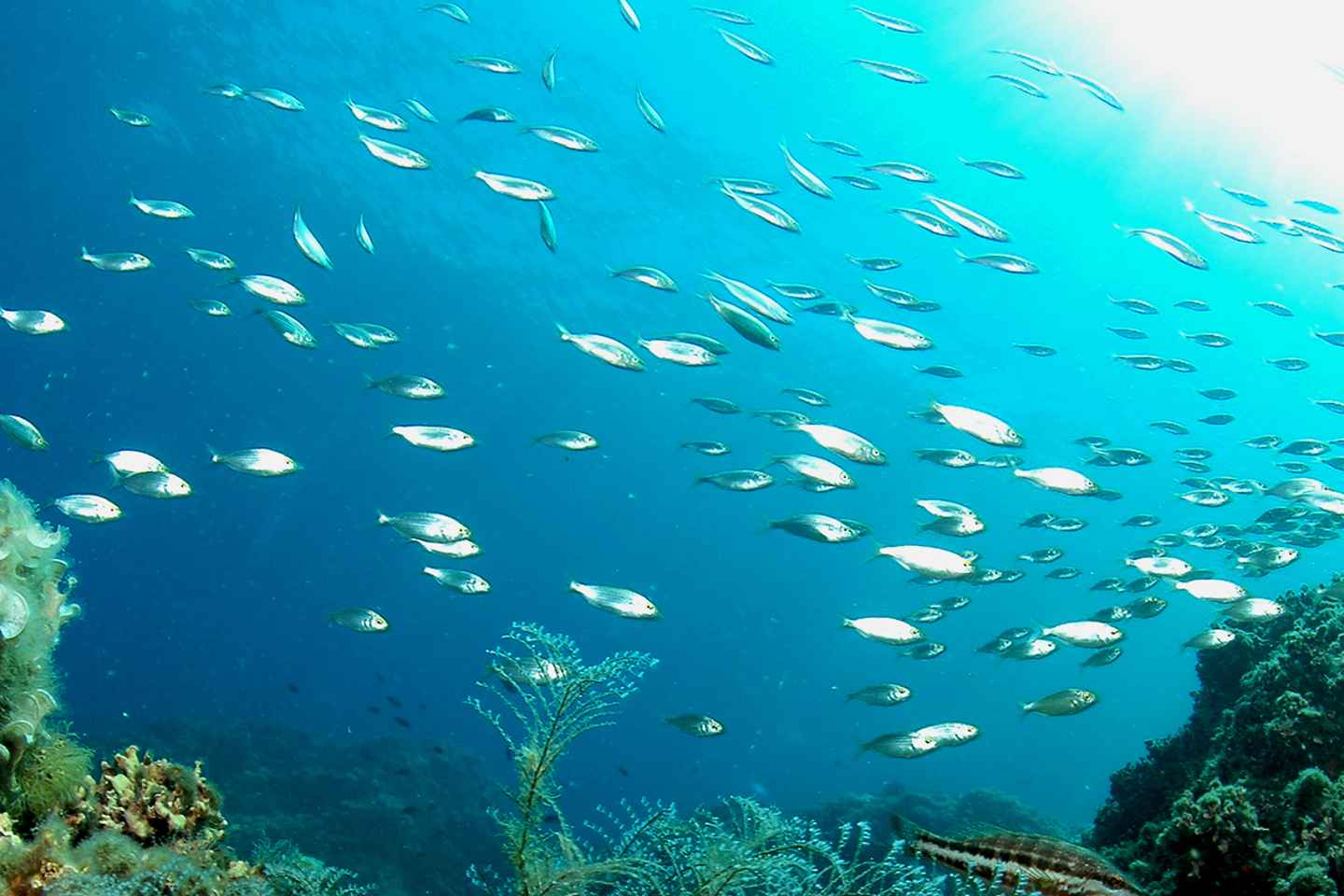 Начните погружение с плавного спуска мимо захватывающих скальных образований. Встретьтесь с красочными стаями рыб и исследуйте увлекательный подводный парк скульптур, который добавит уникальности вашему приключению.