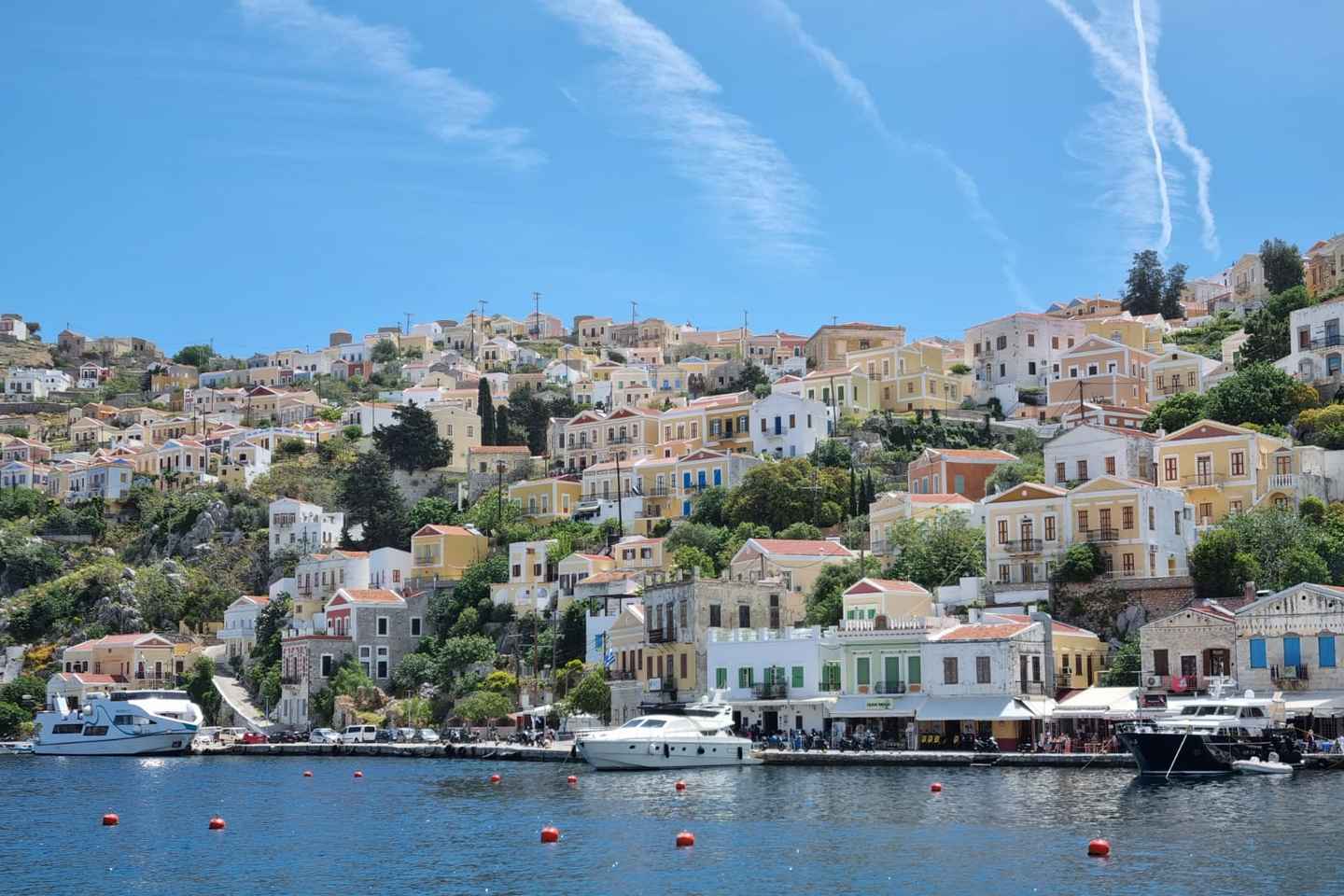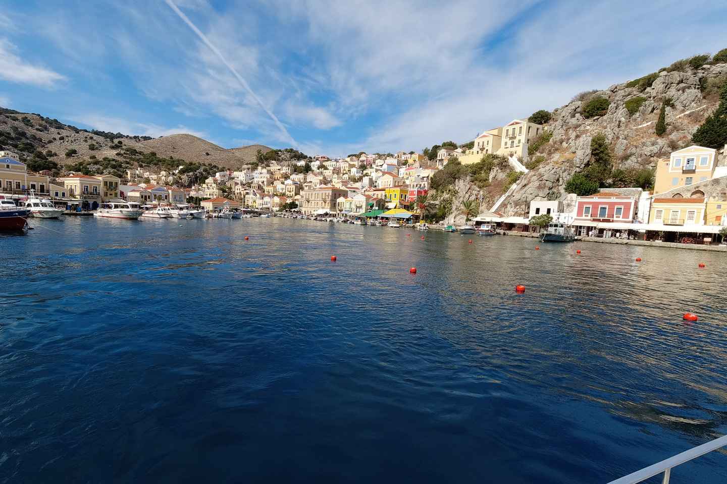 Начните своё путешествие с бесплатного кофе или чая перед отплытием. Полюбуйтесь яркой неоклассической архитектурой Сими Ялос, где красочные дома выстраиваются вдоль порта, приглашая вас исследовать очаровательные улочки и Старый город, охраняемый ЮНЕСКО.
