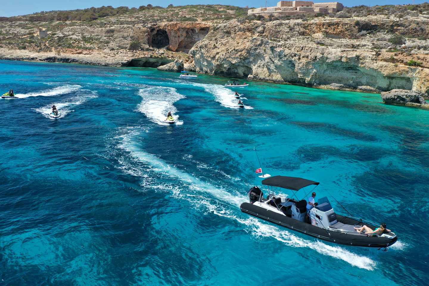 По прибытии вас встретит дружелюбный персонал, который проведёт подробный инструктаж по безопасности, чтобы вы чувствовали себя уверенно во время поездки. Отправляясь из бухты Марфа, наслаждайтесь захватывающим сочетанием скорости, морских брызг и ветра. Направляйтесь к острову Комино, где вы сможете увидеть такие достопримечательности, как Батарея Святой Марии и Арка Комино.