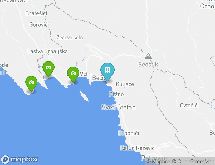 Гости могут легко добраться до многих популярных достопримечательностей поблизости. Старый город Будвы — всего в 3.7 км от вашего жилья, и вам точно стоит уделить внимание этой достопримечательности. Колокольня — еще одна популярная достопримечательность в этом районе. Она находится в 18.7 км от вашего жилья.