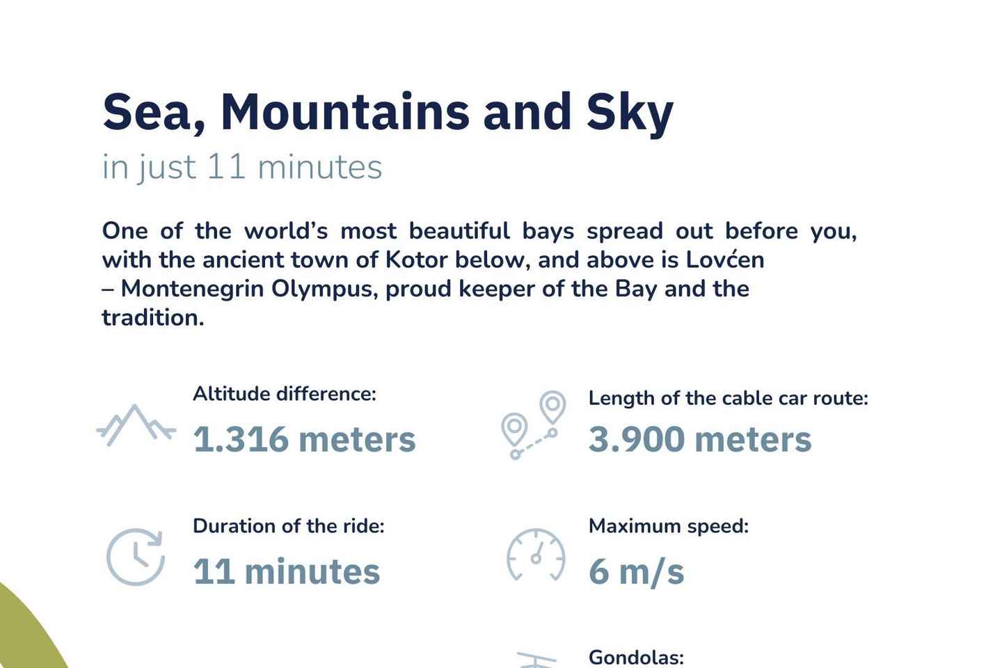 Вернувшись в Котор, поднимитесь на Дуб на захватывающем дух фуникулёре. Поднимитесь с 65 до 1350 метров и насладитесь панорамными видами на Котор, Тиват и окружающую бухту. На вершине угоститесь местными деликатесами и напитками, наслаждаясь потрясающими пейзажами.