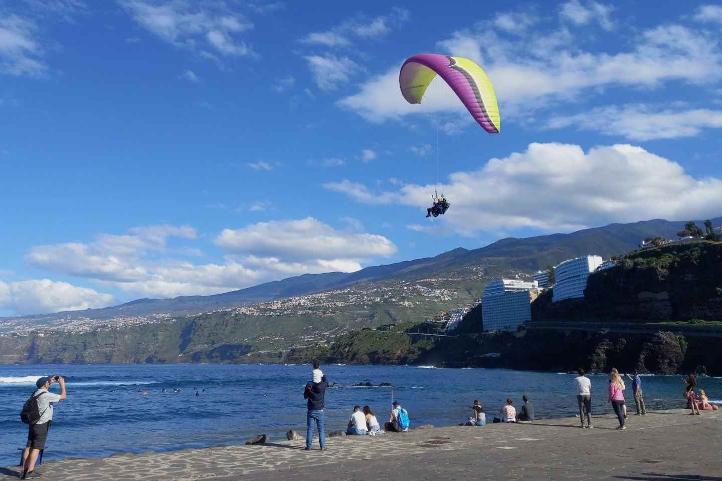 Приготовьтесь парить над живописной красотой Пуэрто-де-ла-Крус, отправившись в захватывающее приключение на параплане! Это уникальное путешествие подарит вам потрясающие виды с высоты 2200 метров над Тенерифе. Спокойно скользите к пляжной посадке, создавая незабываемые воспоминания на каждом этапе пути.