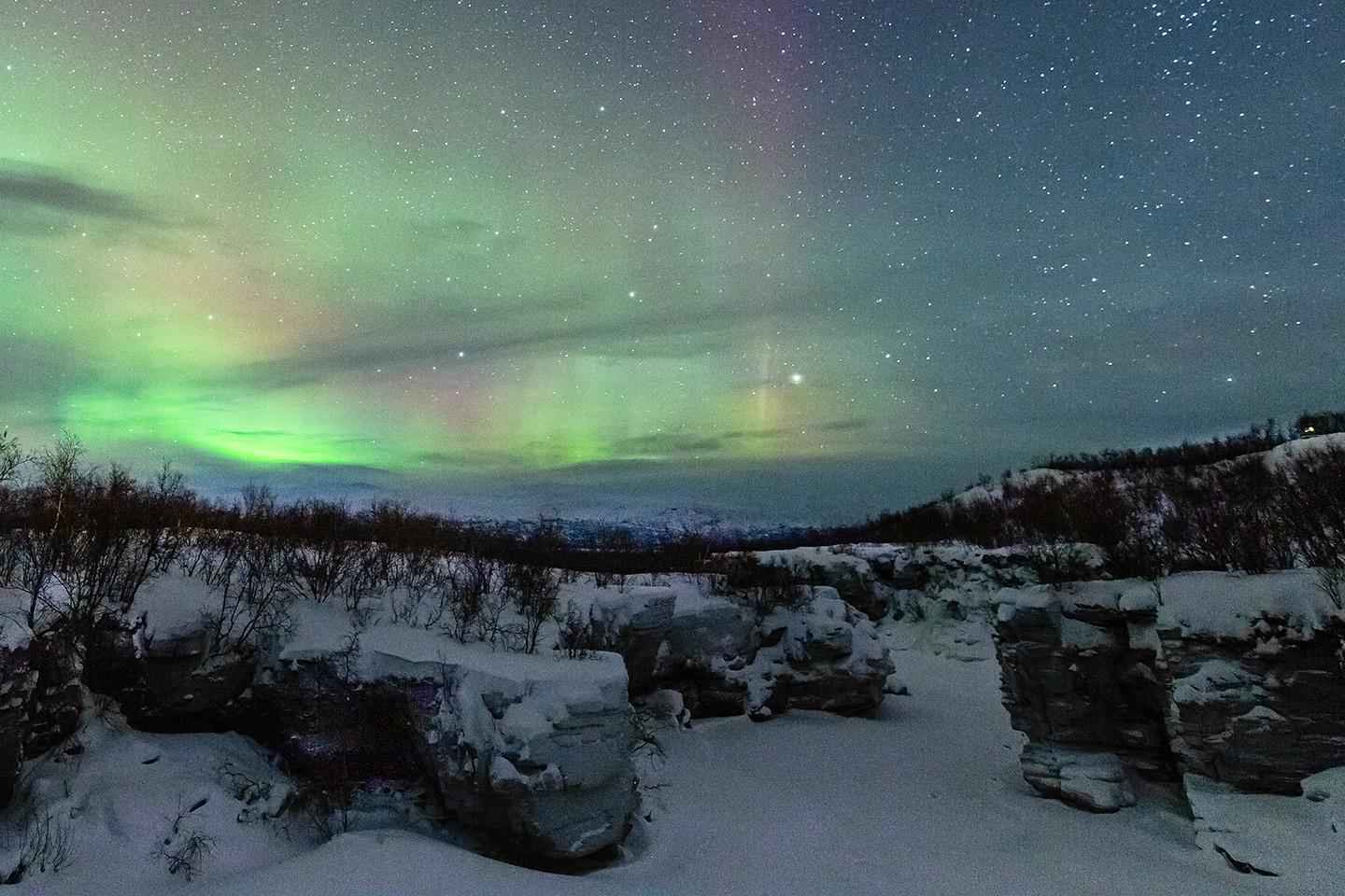 Важна гибкость — в зависимости от погоды мы можем исследовать Абиско или отправиться за сиянием обратно в Кируна. Хотя гарантии на наблюдение нет, наш гибкий подход увеличивает ваши шансы.
