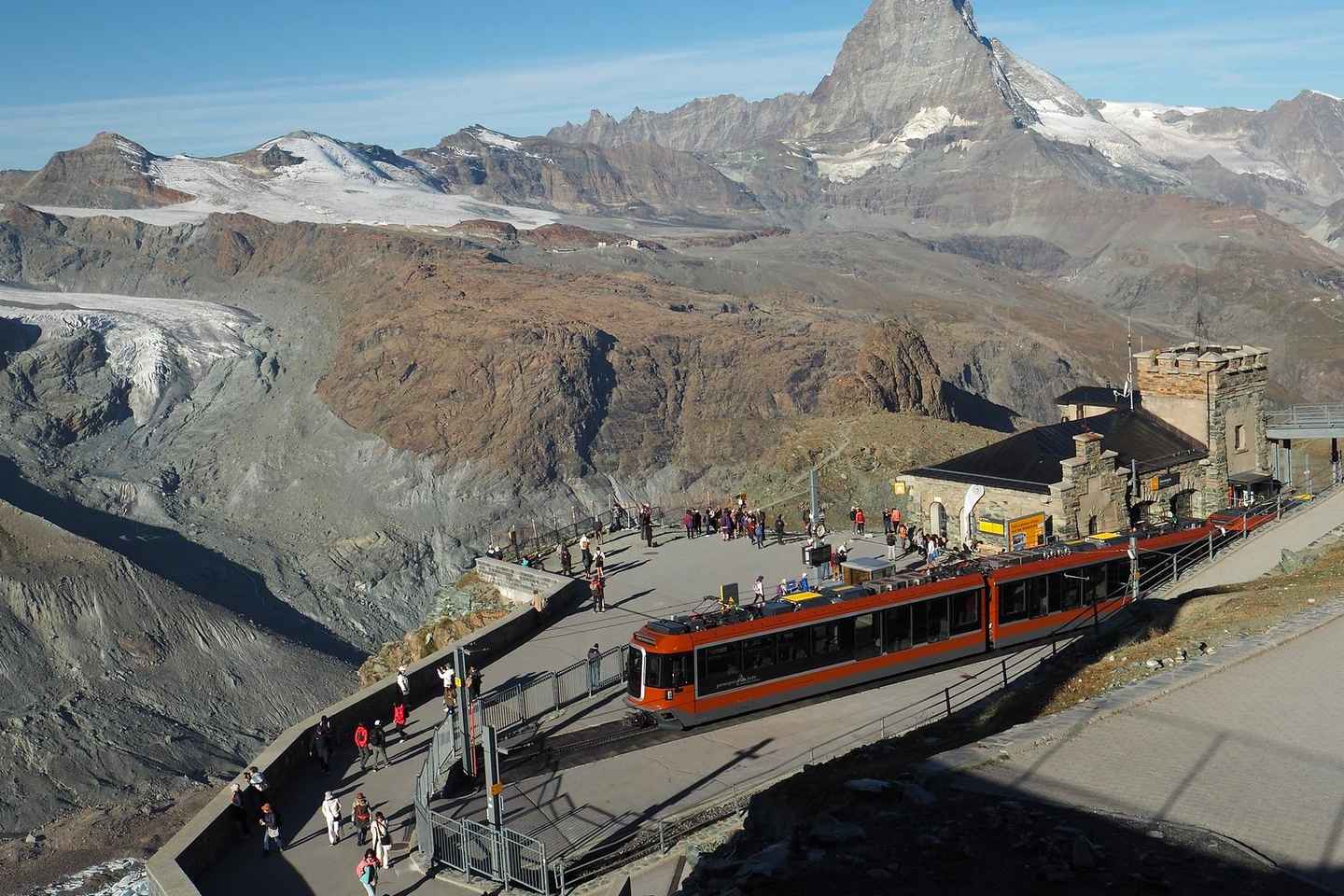 Почувствуйте волшебство природной красоты Церматта на захватывающем альпийском приключении с гидом! Начните своё путешествие с 30-минутной поездки на знаменитом зубчатом поезде до станции Горнерграт. Во время подъема насладитесь живописными видами мостов, туннелей и водопадов на фоне величественного Маттерхорна.