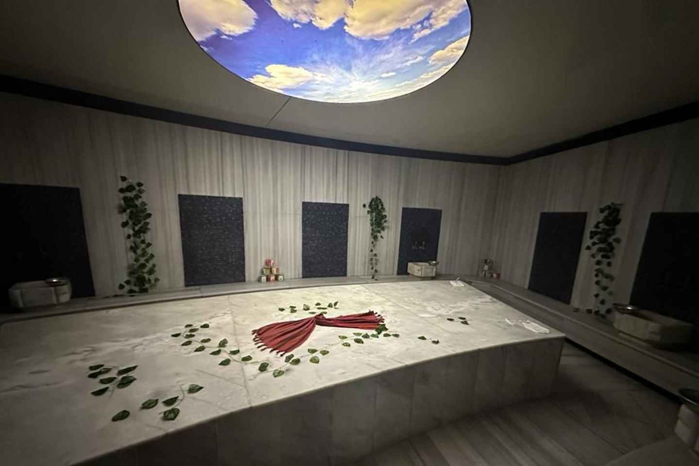 Погрузитесь в мир релаксации с традиционным турецким хаммамом в Мармарисе! С самого начала вашего визита вас ждет ключ, браслет на запястье, деревянные тапочки и хлопчатобумажное покрывало — всё это создаст атмосферу подлинного спа-путешествия.