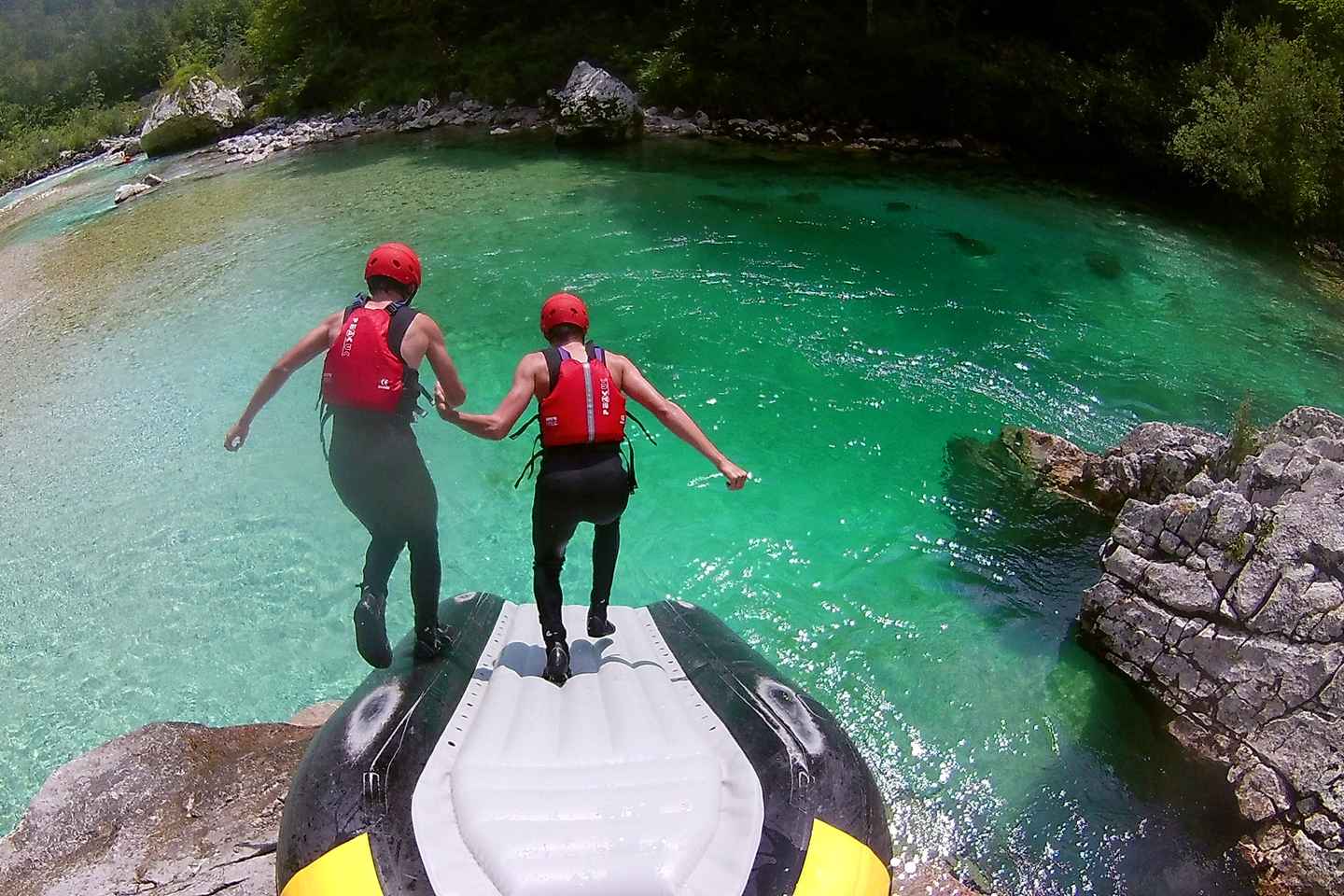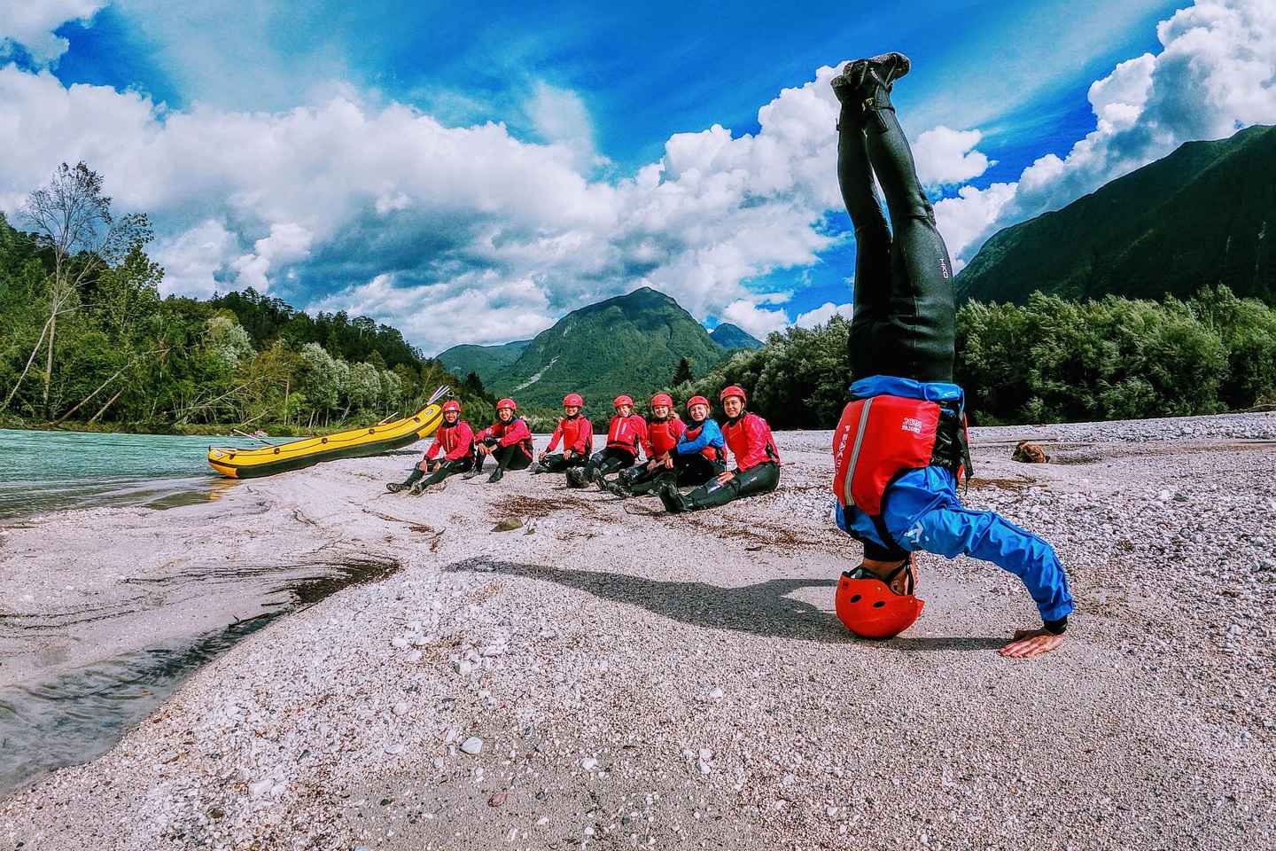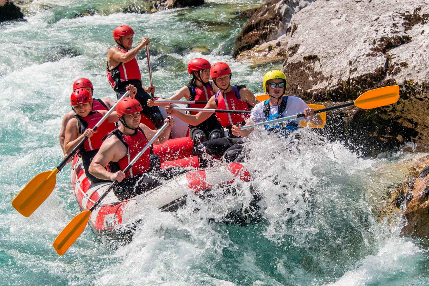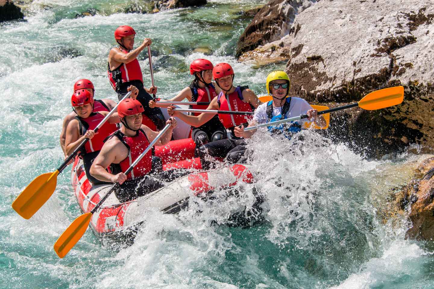 The first stretch of the Soca River offers calm waters, perfect for swimming and soaking in the breathtaking alpine scenery. As the journey continues, the pace picks up, and the real excitement begins. You'll paddle through crystal-clear rapids, working together as a team to conquer the river’s twists and turns.