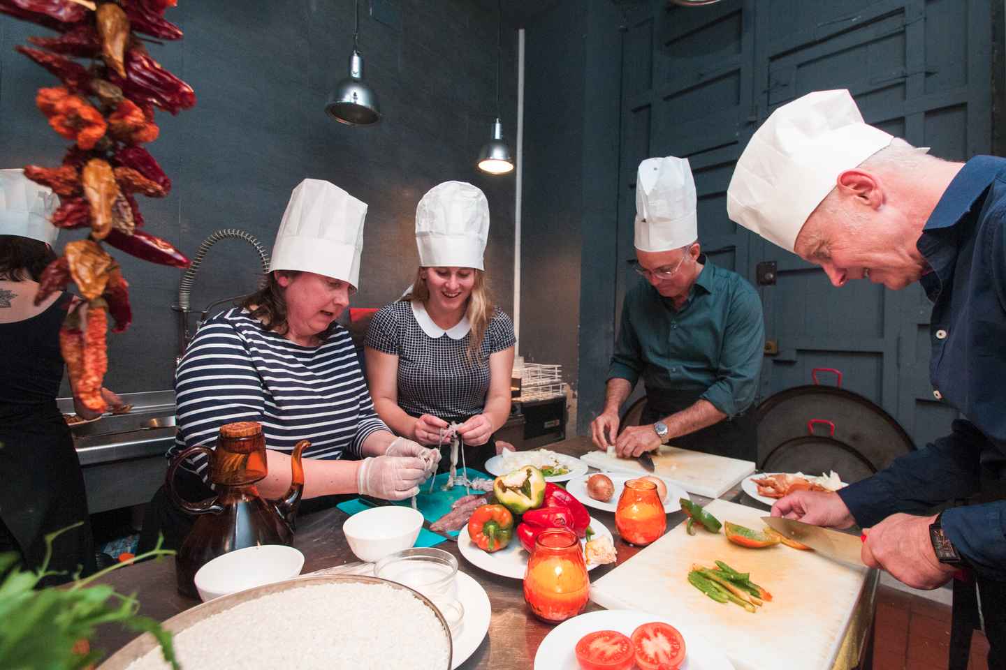 Step into a private dining space with an open kitchen, where you’ll learn to prepare authentic Spanish tapas. Craft your own pan con tomate and Basque pintxos, then enjoy your creations with a refreshing glass of sangría as the chef begins the paella demonstration.