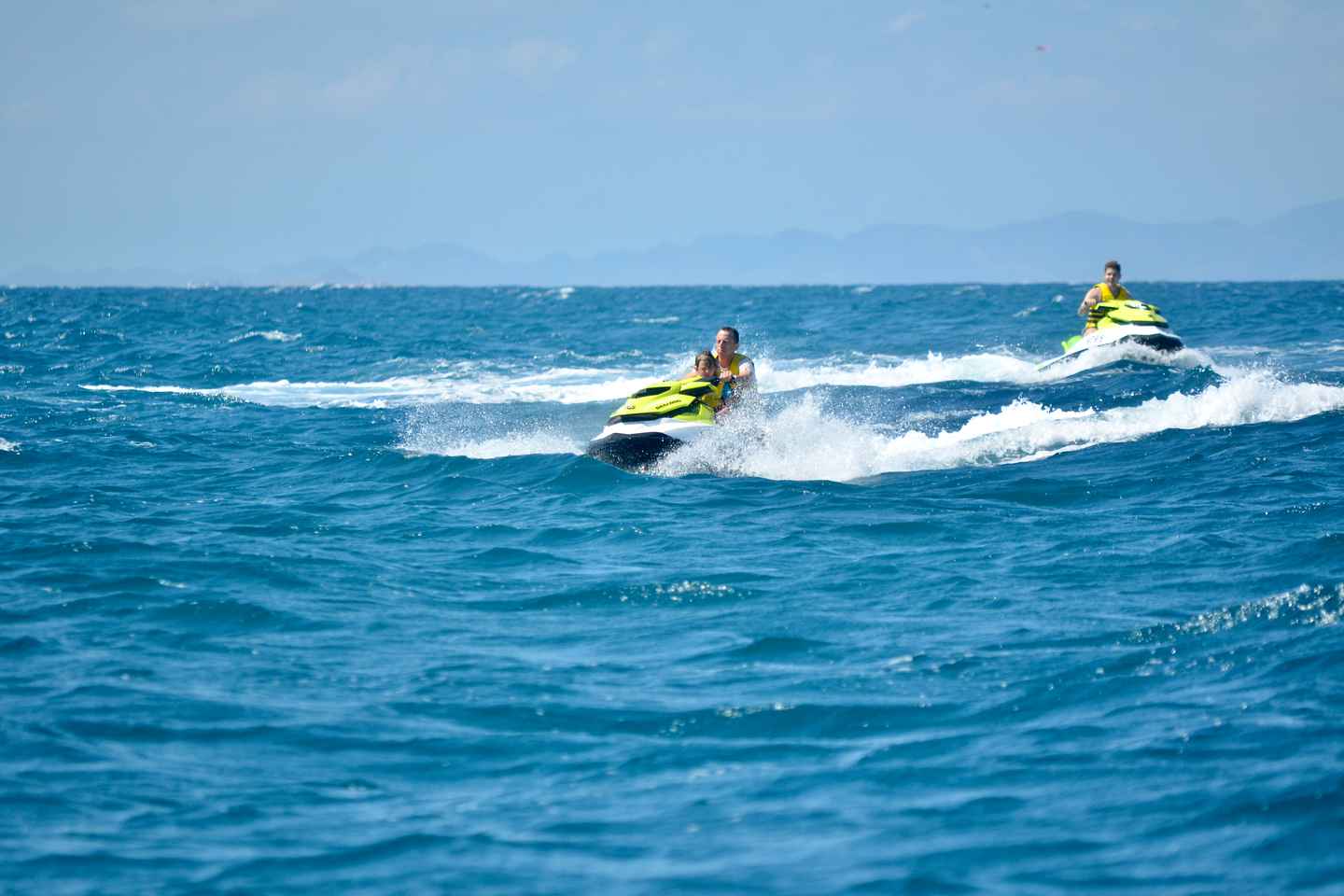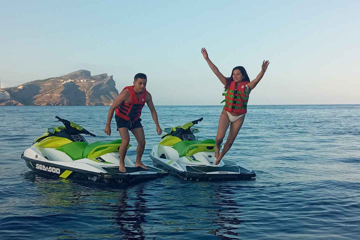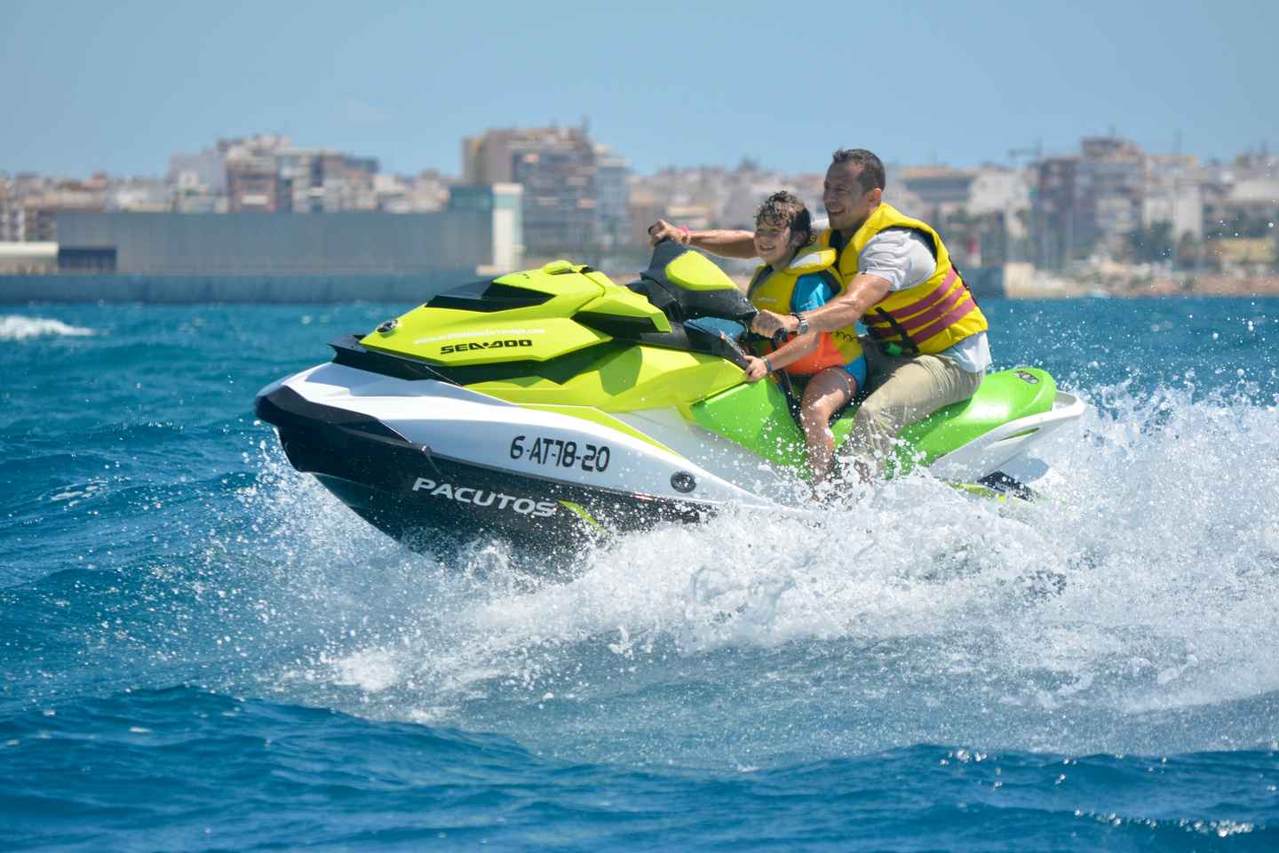 Experience the thrill of riding a jet ski along the stunning coast of Torrevieja, Spain, no license required. Guided by qualified instructors, you'll quickly learn how to operate your jet ski safely before setting off to explore the sparkling Mediterranean waters and scenic city skyline.