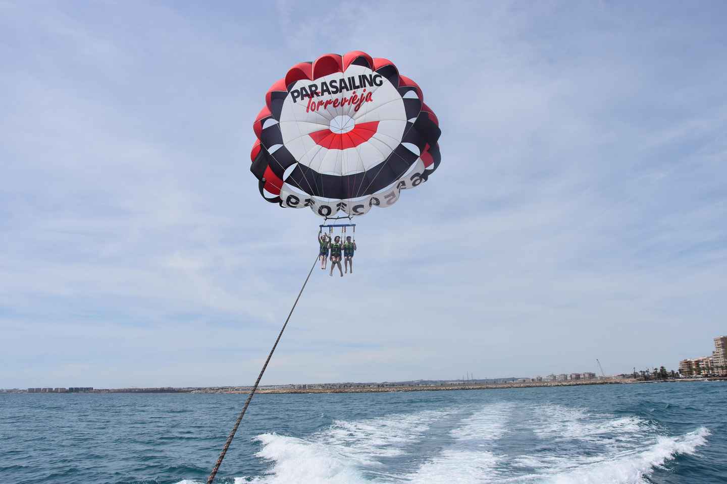 Soar high above the sparkling Mediterranean with a thrilling parasailing adventure in Torrevieja, Spain. Begin your journey at the Real Club Náutico de Torrevieja, where friendly staff and an experienced crew welcome you aboard a comfortable boat.