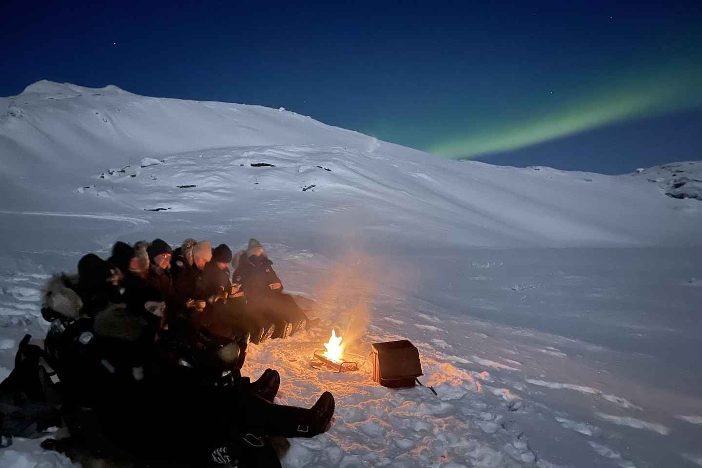Upon arrival at the secluded viewing spot, you'll park your snowmobiles and gather around a crackling fire. Savor a warm snack and a hot drink as your knowledgeable guide shares fascinating stories and lore about the Aurora Borealis, making the wait for the lights even more enchanting.