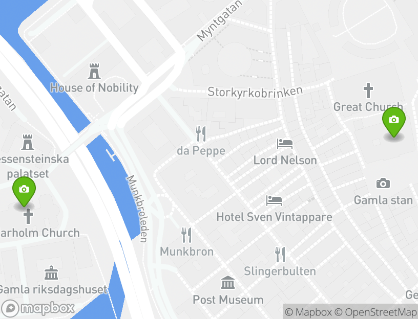 Throughout your cultural exploration, you’ll learn more about Bonde Palace, The Royal Palace, Storkyrkobrinken, Gåstorget, and Gamla stan.