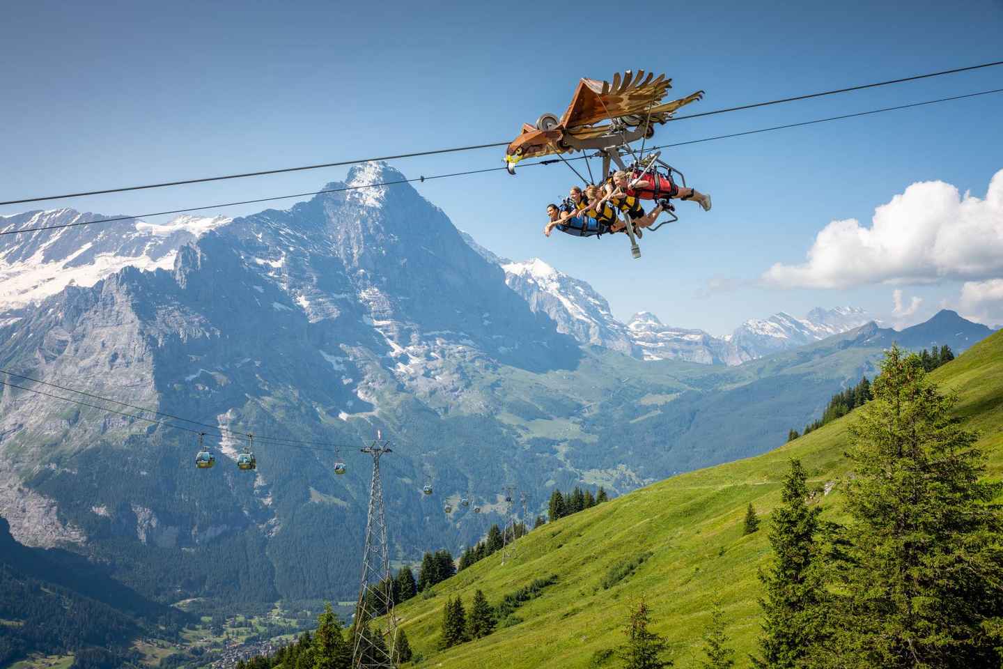 At the summit, immerse yourself in an alpine paradise. Brave the thrilling Cliff Walk, a sky-high path with a one-rope suspension bridge offering an adrenaline rush and sweeping views. For extra excitement, you can book adventurous activities like ziplining, trottibiking, or the First Glider on site.