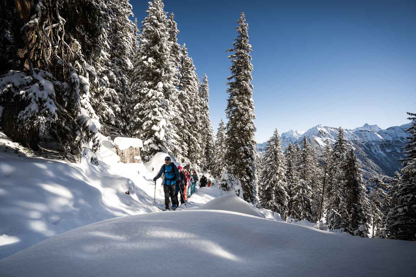 After your invigorating hike, reward yourself with a delicious Swiss cheese fondue served in a charming mountain restaurant. Savor authentic flavors in a warm, rustic setting, the perfect complement to your winter outing.