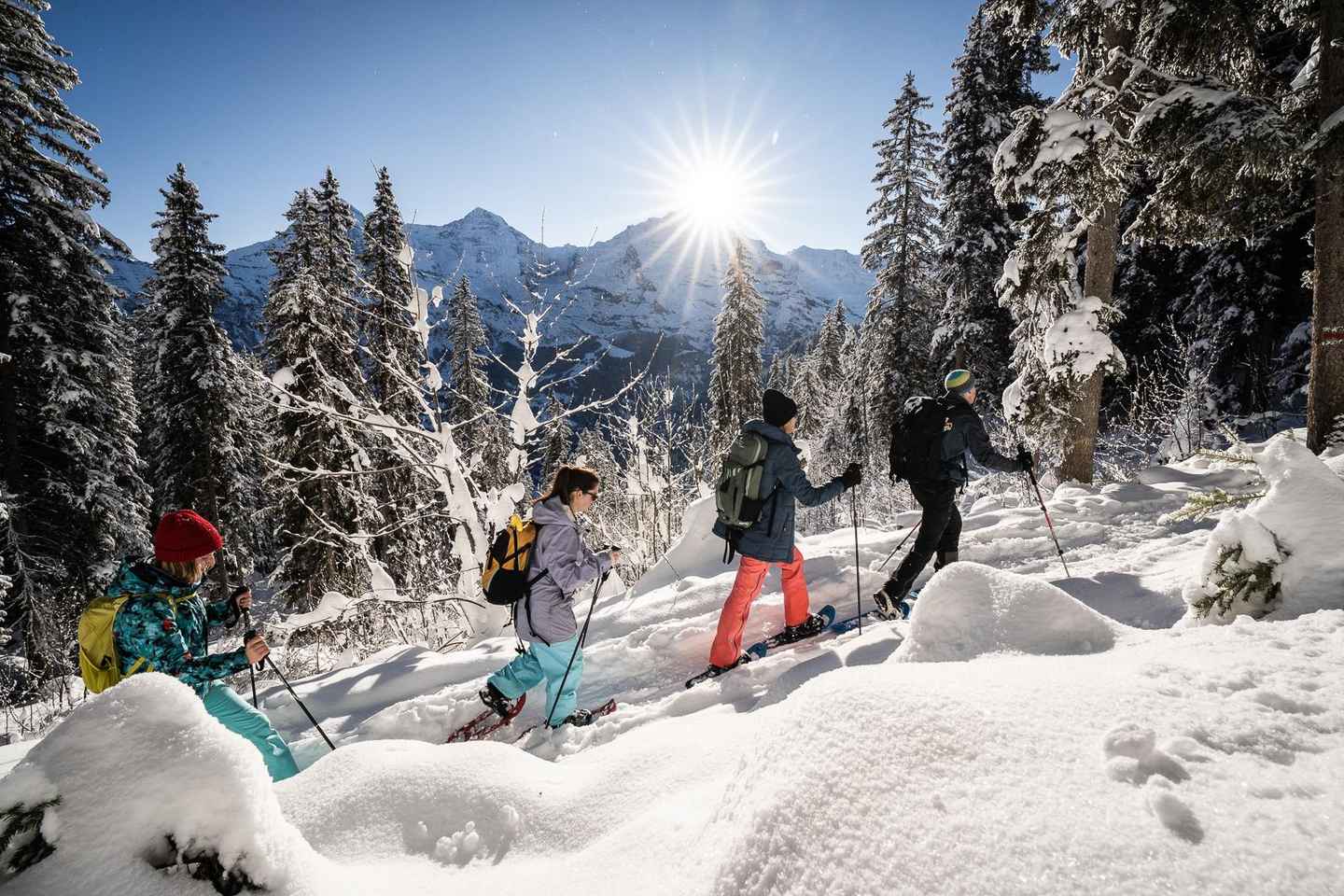 Embark on a magical winter adventure in Interlaken, Switzerland, with this half-day alpine experience that combines snowshoeing, dining, and sledding. Begin your journey by strapping on provided snowshoes and venturing along pristine mountain trails, surrounded by breathtaking snowy landscapes and tranquil forests.