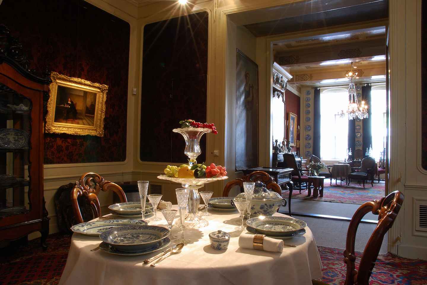 Marvel at the exquisite painted ceiling commissioned by Tetar van Elven, featuring the names of legendary old masters like Raphael, Rubens, and Rembrandt. The collection extends beyond art, with cabinets brimming with Delft blue pottery, Far Eastern porcelain, and antique books, all meticulously displayed.
