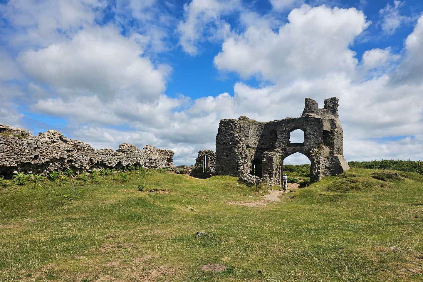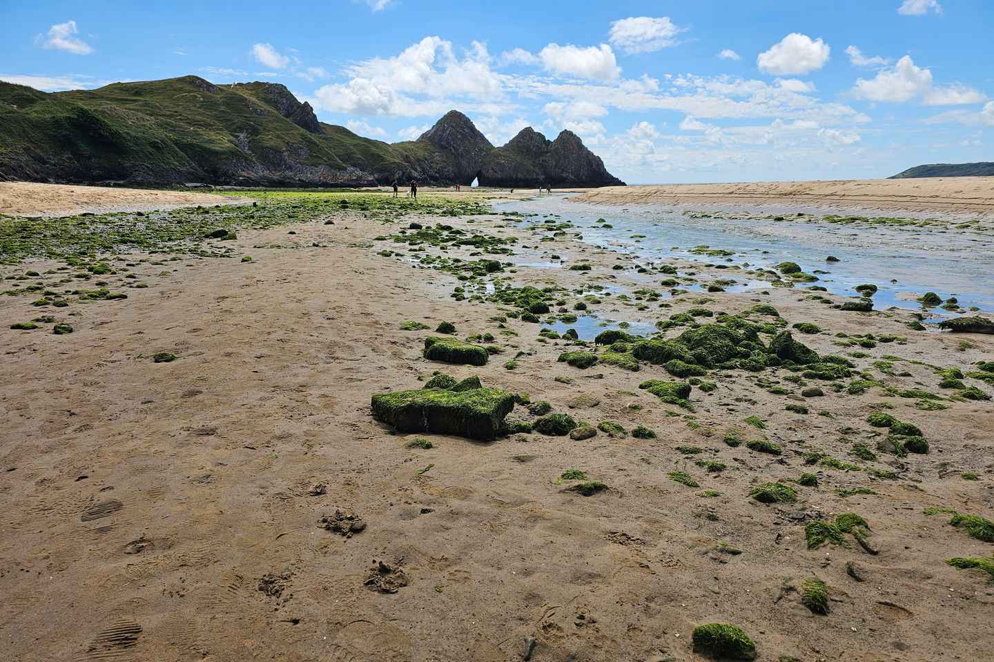 Next, descend into the valley and step onto the golden sands of Three Cliffs Bay, an award-winning beach renowned for its dramatic limestone cliffs and picturesque views. Depending on the tide, you’ll have the chance to wander along the shoreline and discover hidden coves before making your way towards the charming Pobbles Beach.
