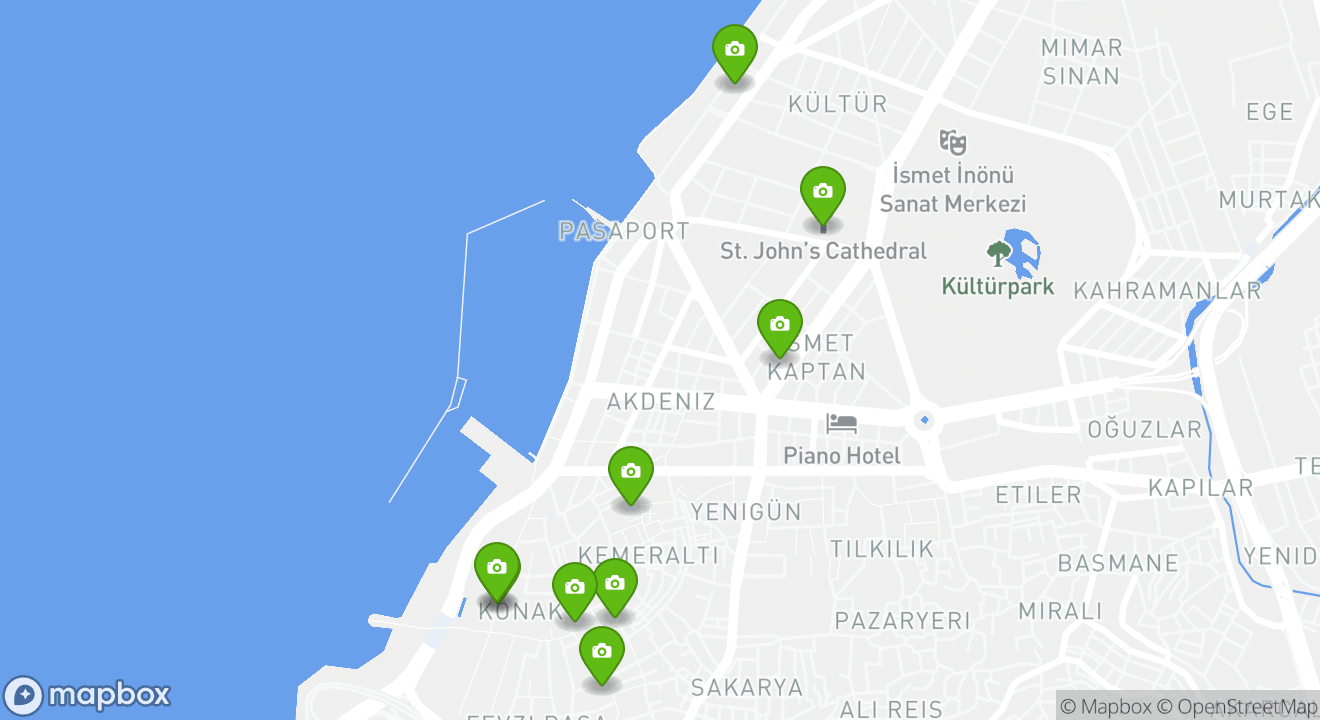 Your next adventure is waiting for you in the city of İzmir. Explore the map to discover all the popular attractions you’ll visit on your unforgettable vacation in Turkey.