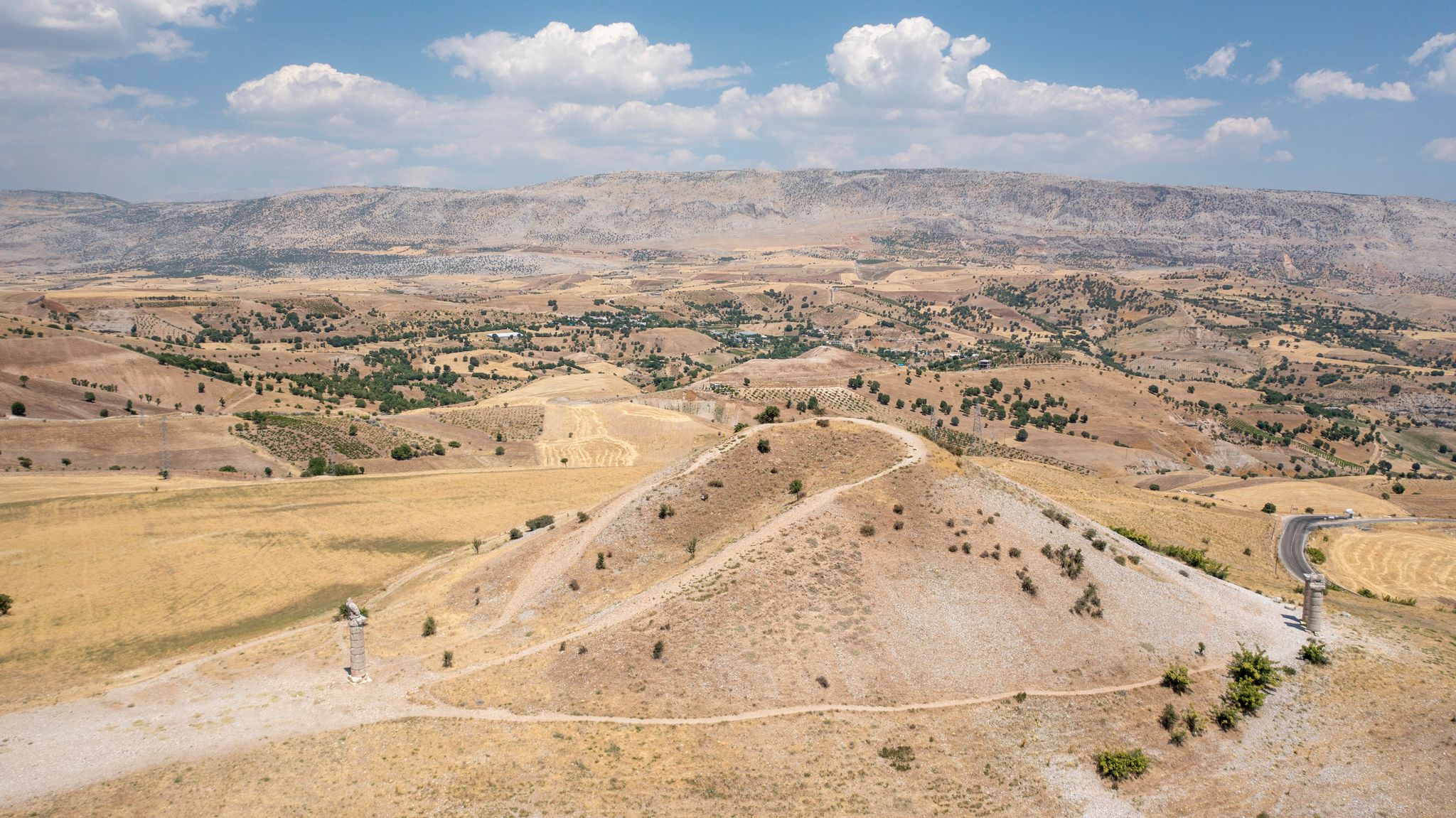 The Karakuş is a testament to the architectural ingenuity and artistic expression of the ancient Commagene Kingdom. Nestled amidst the serene landscapes of Bağözü, Turkey, it stands out prominently due to its monumental burial mound flanked by towering columns. Each column once bore intricately carved statues, hinting at the grandeur that this site once embodied.
