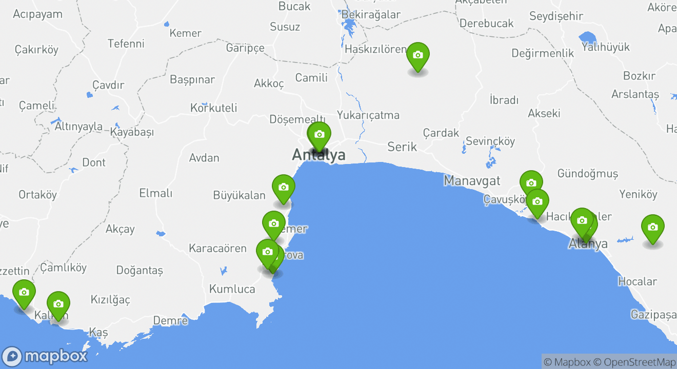 Your next adventure is waiting for you in the region of Antalya. Explore the map to discover all the popular attractions you’ll visit on your unforgettable vacation in Turkey.