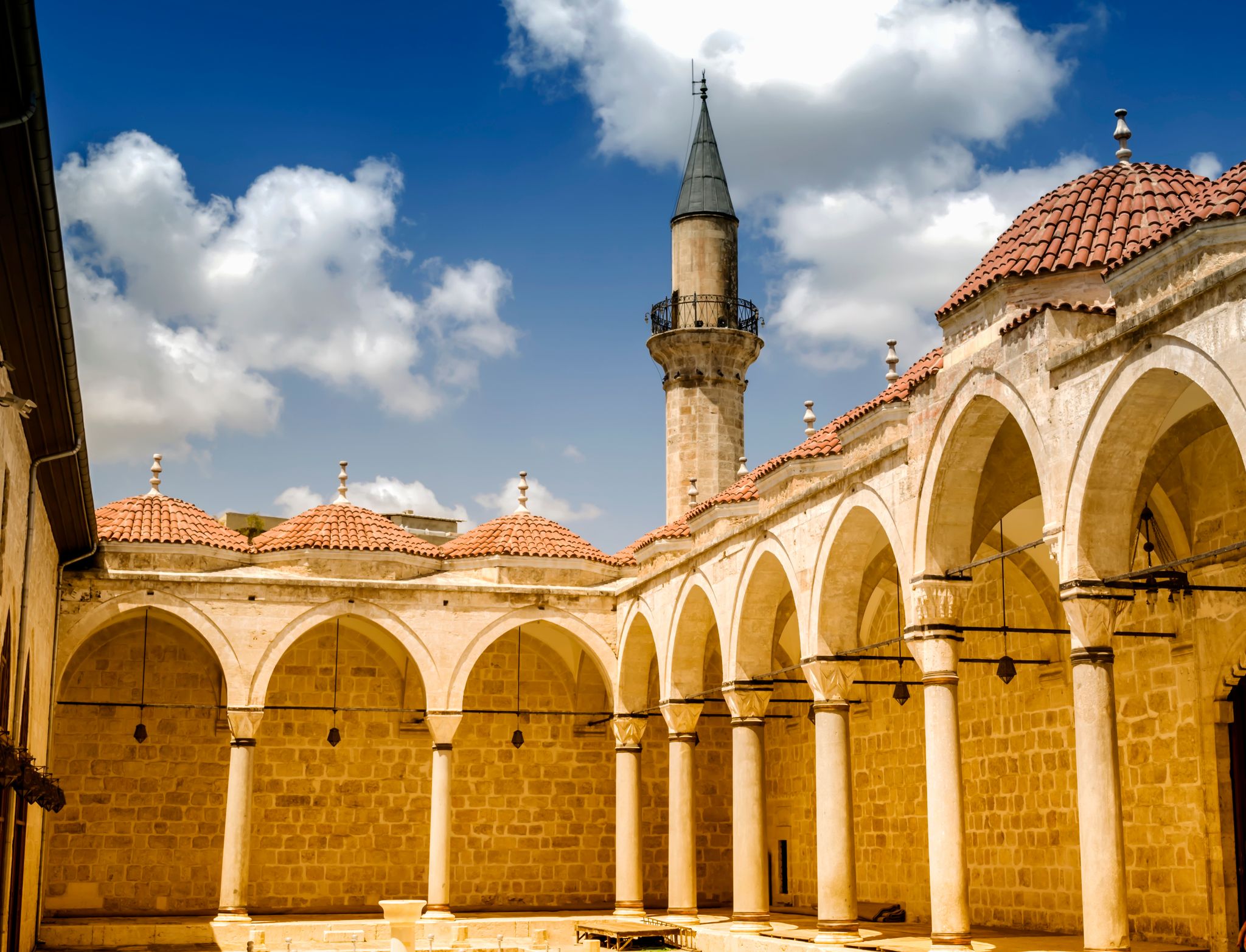 Inside, the mosque's vast prayer hall features soaring arches and a domed ceiling that amplifies the harmonious chorus of prayers. The mosque is also home to the tomb of the revered Islamic scholar Sufi Dede, making it a pilgrimage site for many spiritual seekers. Visitors are often enchanted by the tranquil gardens surrounding the mosque, where ancient olive trees whisper stories of bygone eras under the gentle Mediterranean sun.
