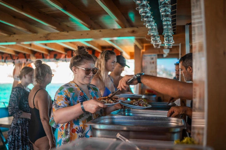 Take advantage of swimming breaks to dive into the refreshing sea, marveling at vibrant marine life. Enjoy a delicious onboard lunch featuring grilled chicken, spaghetti or rice, and fresh salad, complemented by unlimited soft drinks.