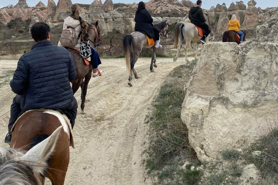Begin your journey with a comfortable ride in an air-conditioned van to the tour's starting point. Once there, you'll receive all necessary riding gear and meet your horse. Set out on your adventure, exploring the fascinating lunar-like landscapes and breathtaking fairy chimneys that define this region.