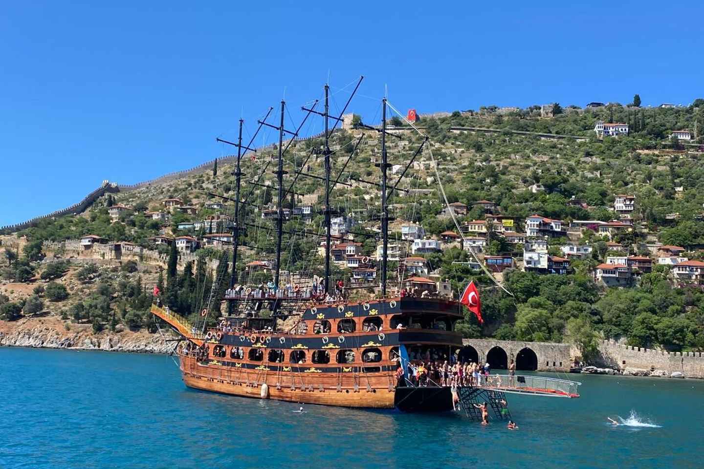 After soaking up the culture, unwind with a relaxing boat trip along Alanya’s stunning coastline. Feel the sea breeze and enjoy the chance to swim in the clear waters near Cleopatra Beach, a spot renowned for its golden sands and inviting atmosphere.