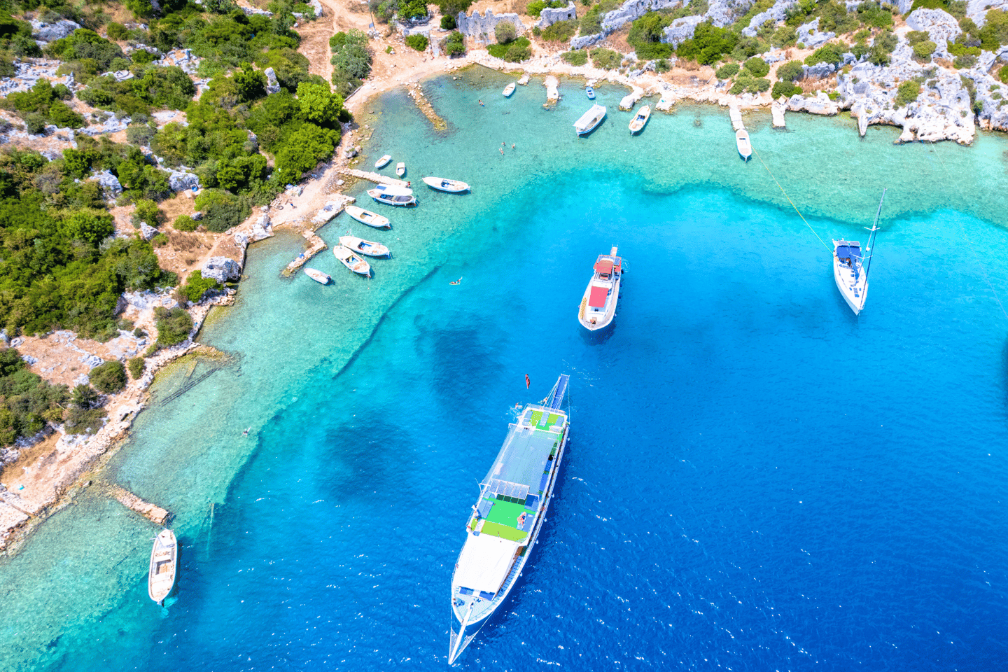 Continue your adventure to Kızıl Burun, also known as Pabuç Burnu, where the vibrant colors of the sea and sky create a breathtaking backdrop. Take advantage of the clear air and shimmering waters for another memorable swim or a peaceful moment on deck.