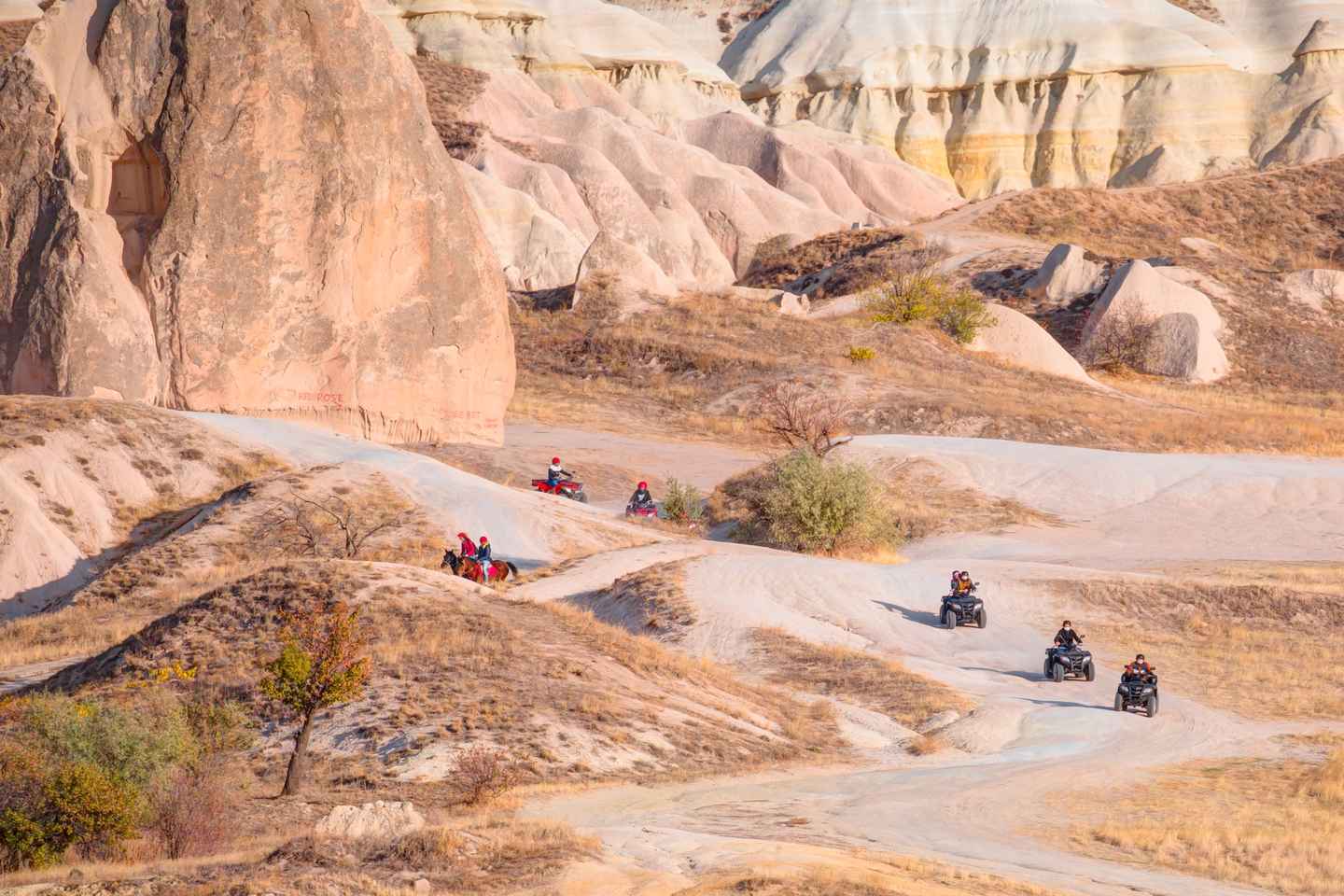 Your journey begins with convenient hotel pickup in either Ürgüp or Göreme, ensuring a hassle-free start. Upon arrival at the departure point, professional instructors will greet you and provide a safety briefing, making this adventure accessible even for first-time riders. All necessary safety equipment is provided for your comfort and peace of mind.